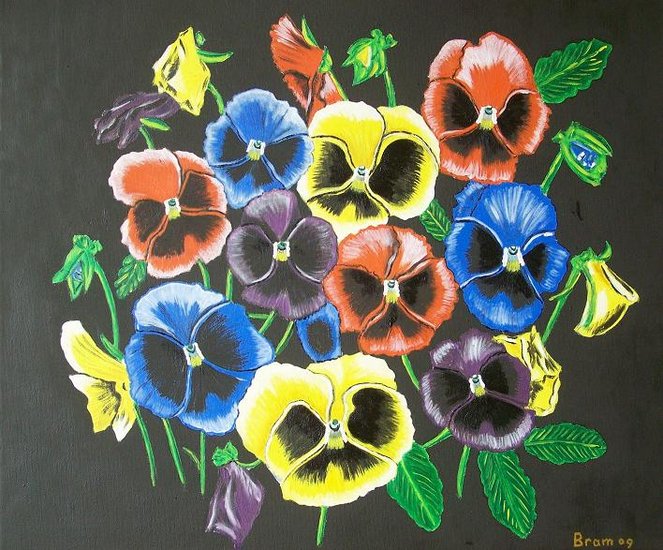 Viooltjes zijde zijn mee geschilderd dus een lijst is niet nodig.