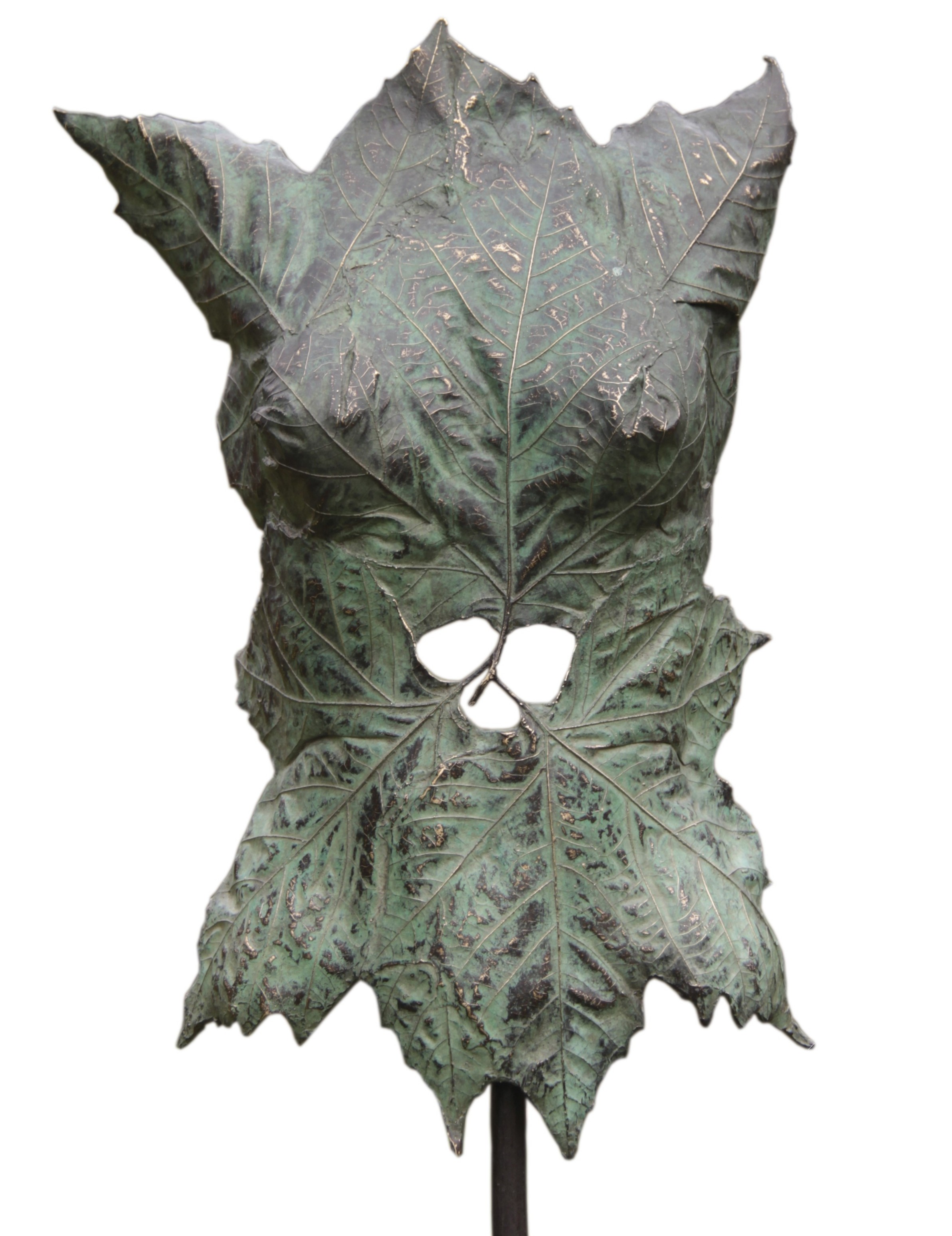 Bronzen vrouwen tors opgebouwd uit plataan bladeren,unicum.