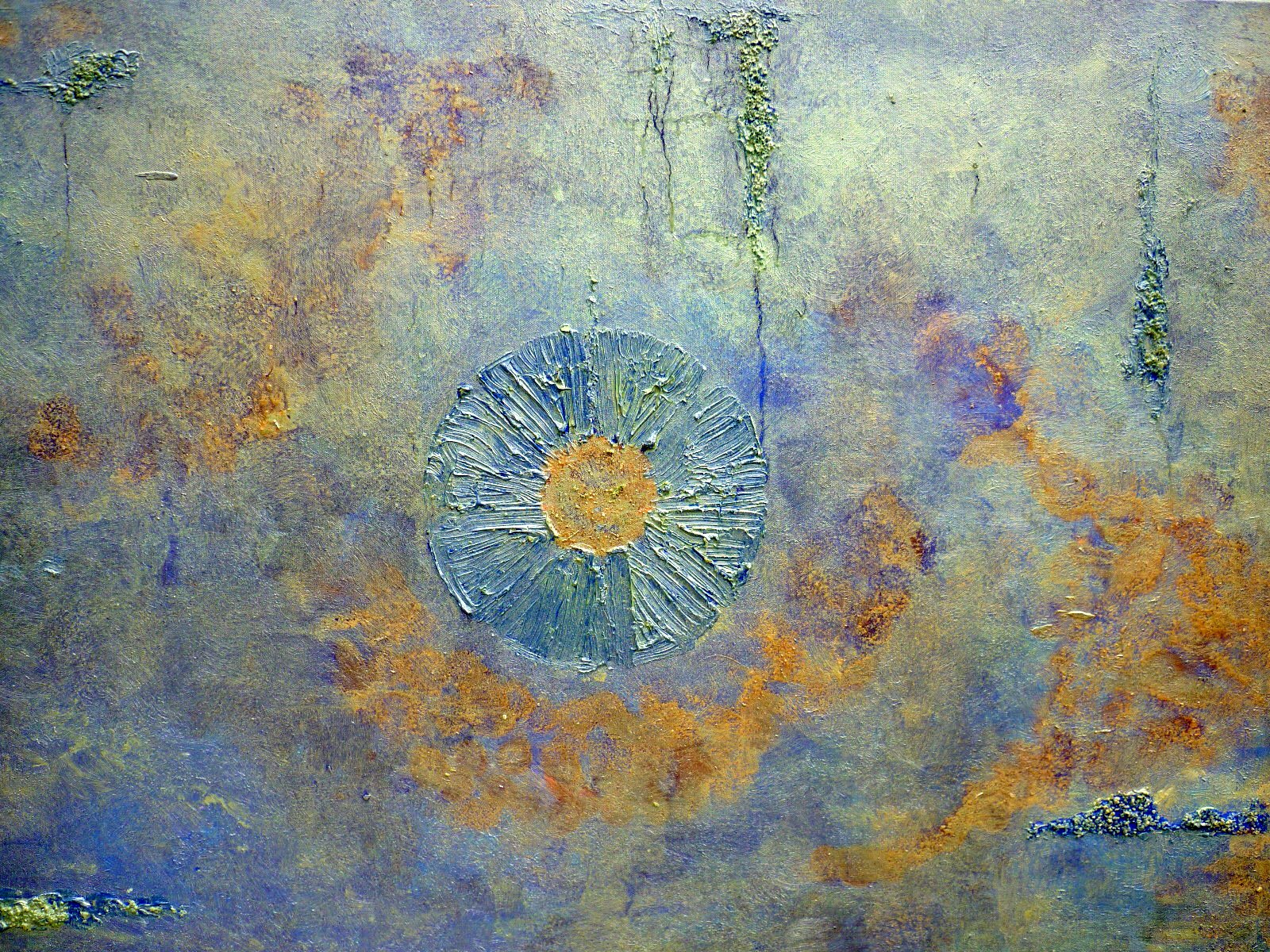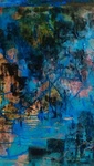Schilderij Blauw Goud Groen Materie