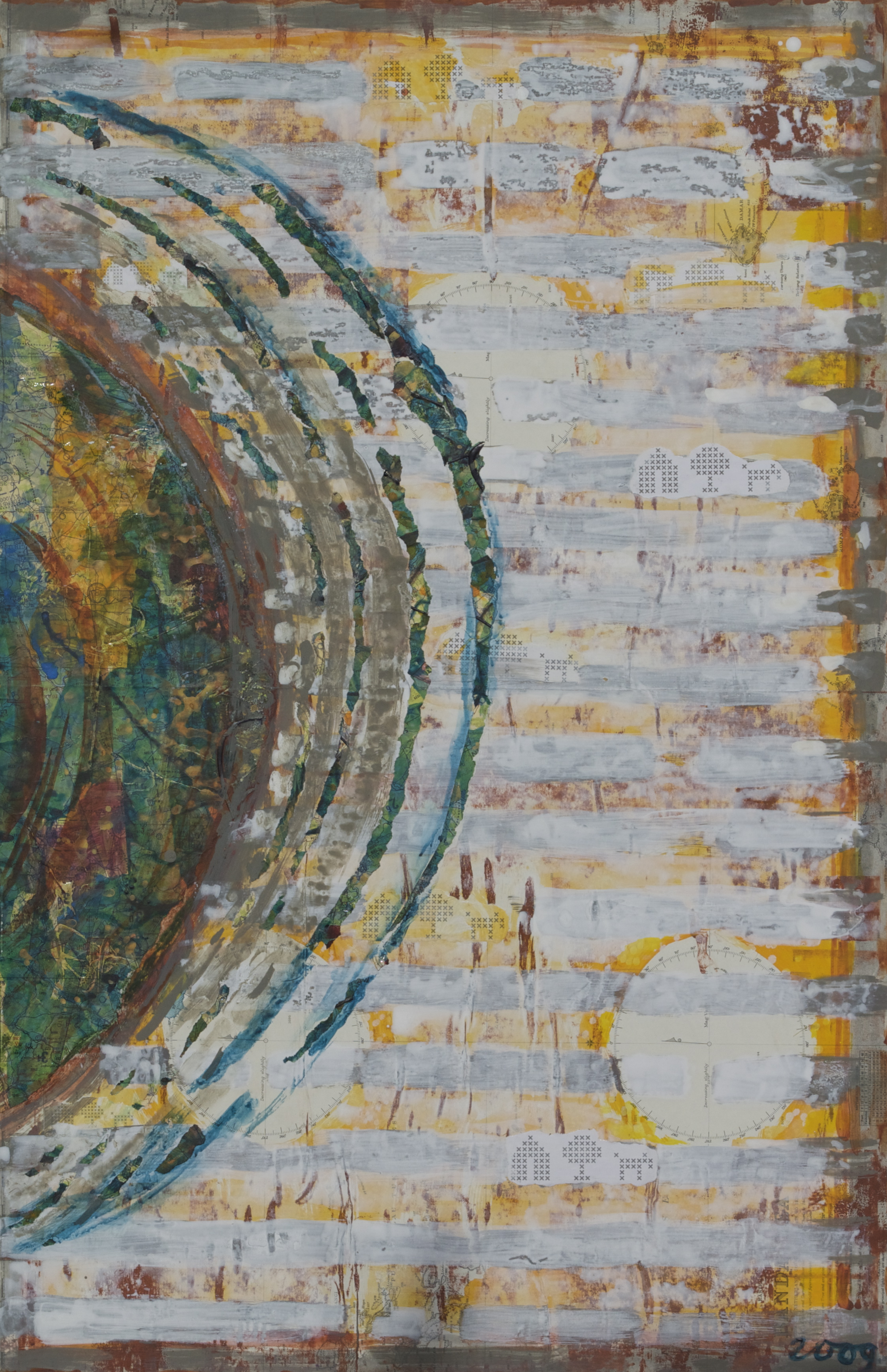 Gemengde techniek en collage van zeekaart op board