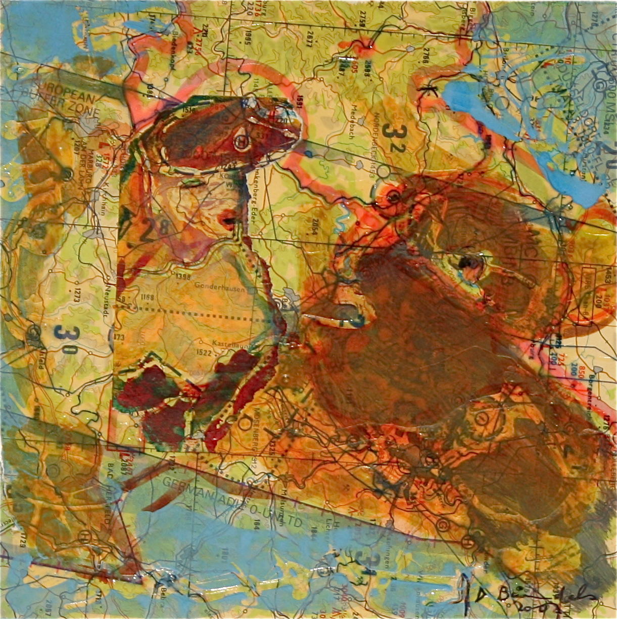 Gemengde techniek (lijm / acryl) op luchtnavigatiekaart
