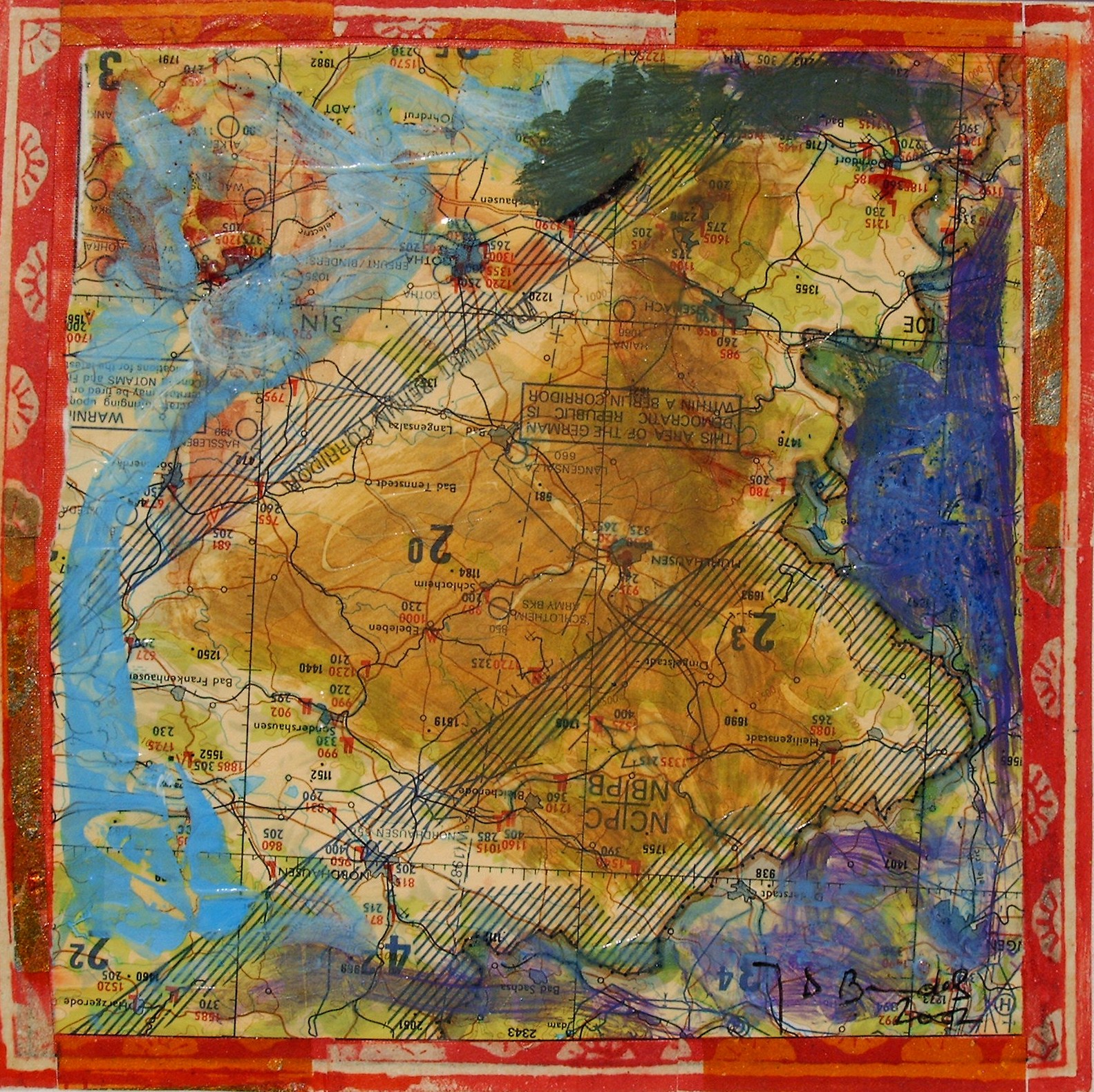 Gemengde techniek (lijm / acryl) op luchtnavigatiekaart