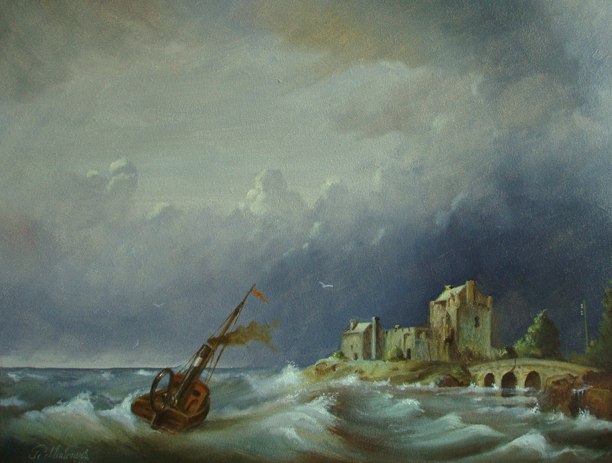 Zee Romantiek Realisme Fantasie Kasteel Storm Sleutel Stoomboot