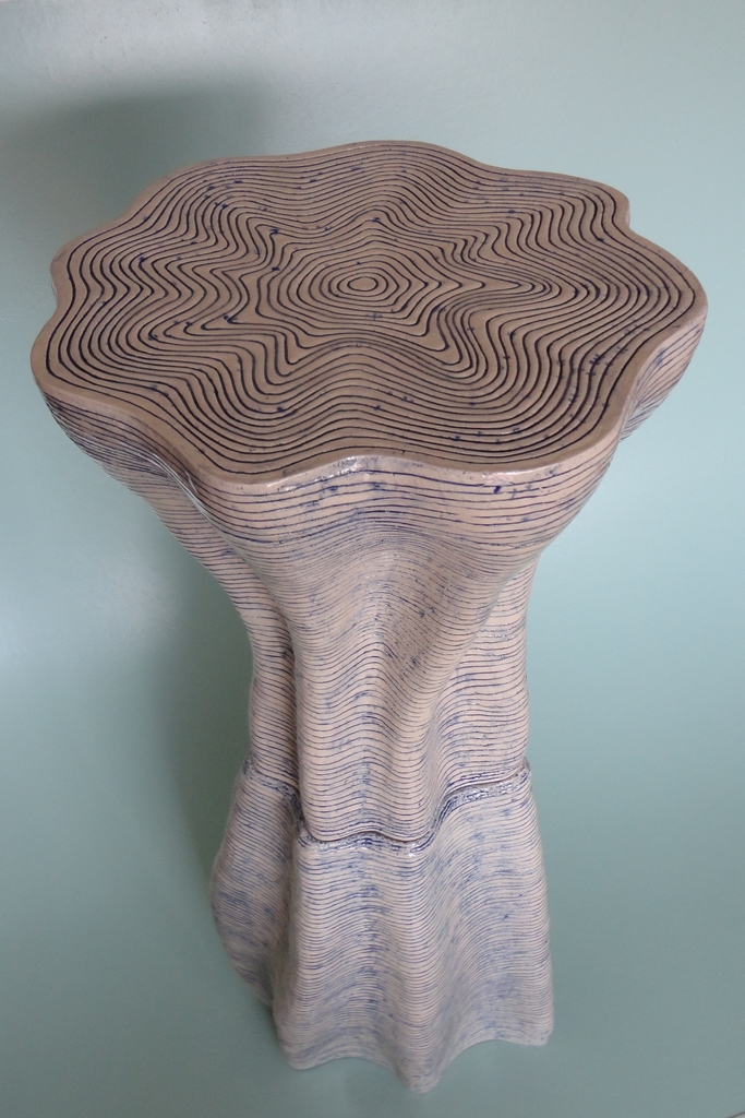 keramische tafel of sokkel met lijnenpatroon in relief