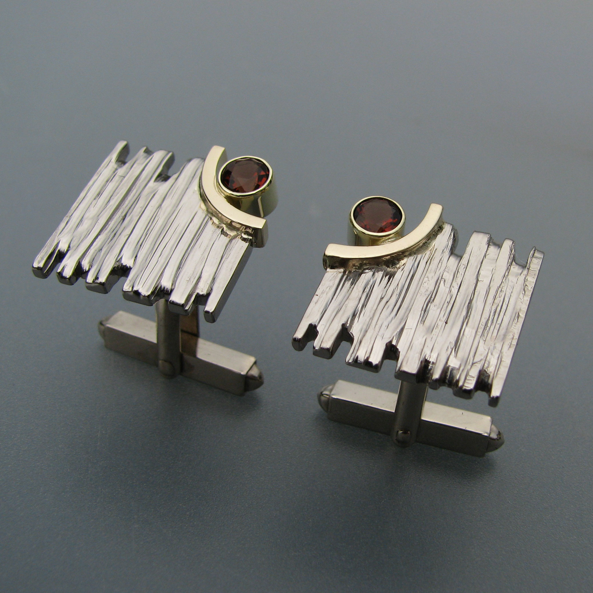 Manchetknopen van wit /geelgoud en bruine topaas. De struktuur is gefreesd. Boomschors is mijn inspiratie voor deze struktuur.