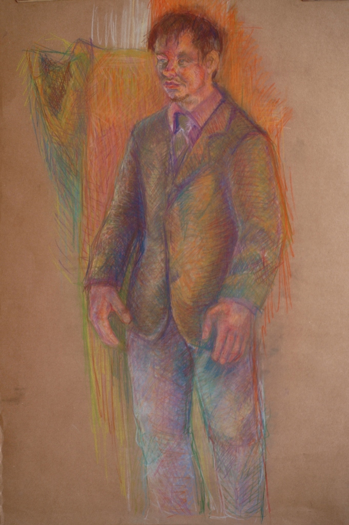 Jochem in pastel potlood op bruin papier