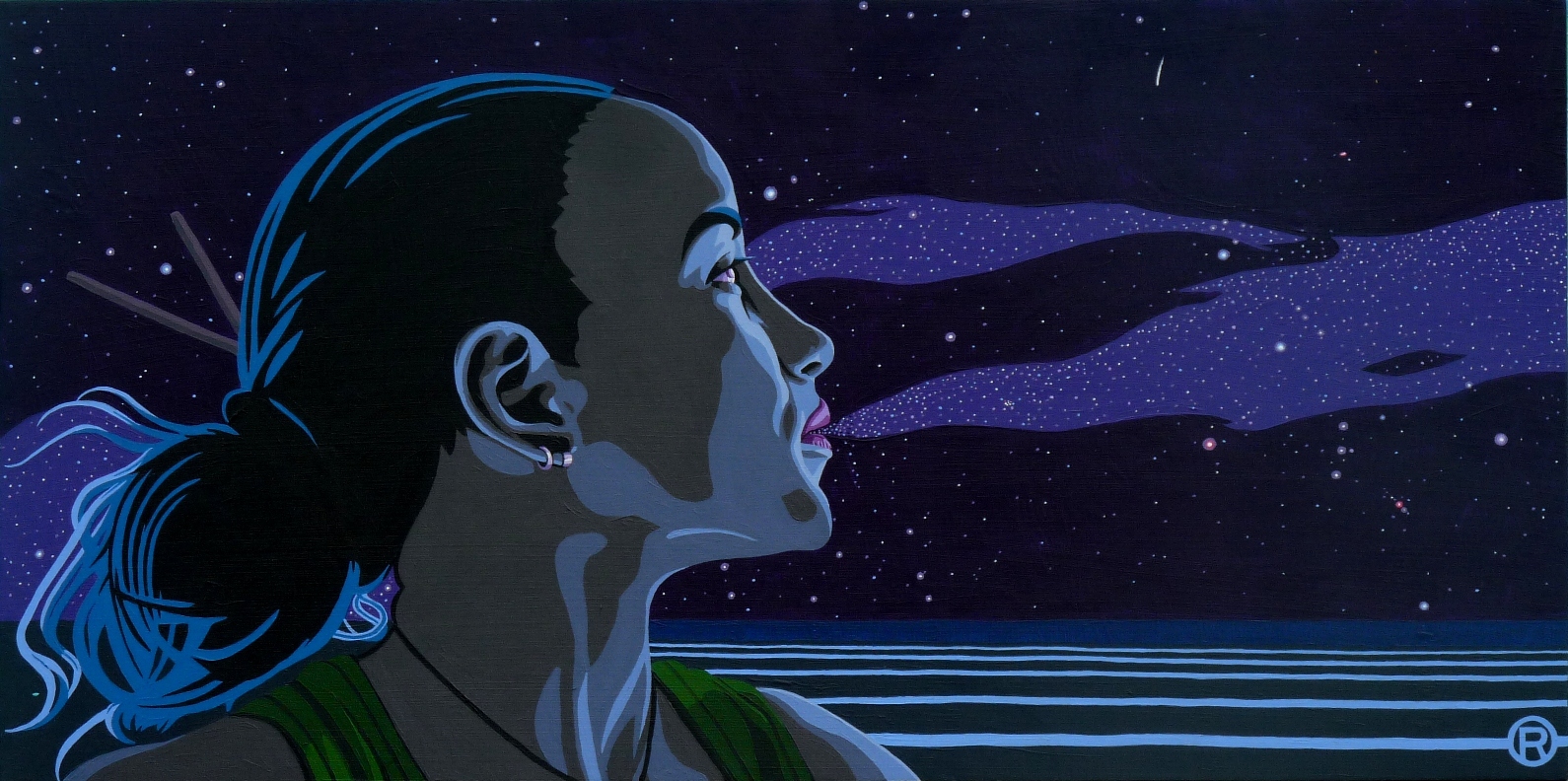 Nachtschilderij, geinspireerd door het opdrachtschilderij "Zuiderkruis' (zie Mannenportretten).