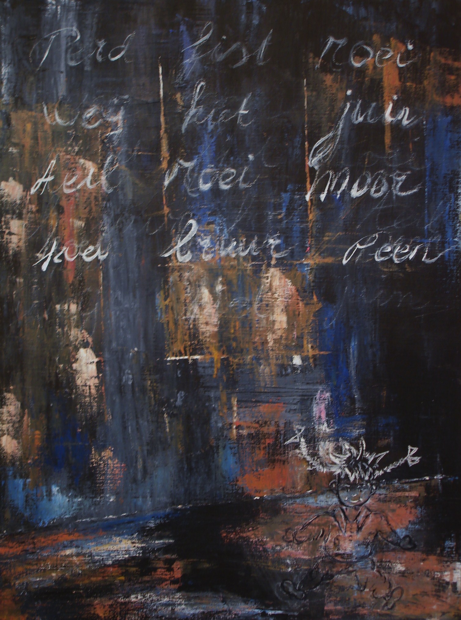 Hallo Het werk dat ik maak bestaat uit acryl en soms nog diverse mediums. De compositie is erg belangrijk voor mij. De innerlijke strijd om vlakken en kleuren in balans te krijgen is iedere keer de opgave maar zeker ook de uitdaging. Wat mijn uitgangspositie ook is; de sfeer en kleuren bepalen mijn uiteindelijke werk. Wat ik wil bereiken? Een gesprek met de kijker, een discussie aangaan, praten over kunst. Saskia Jacobs