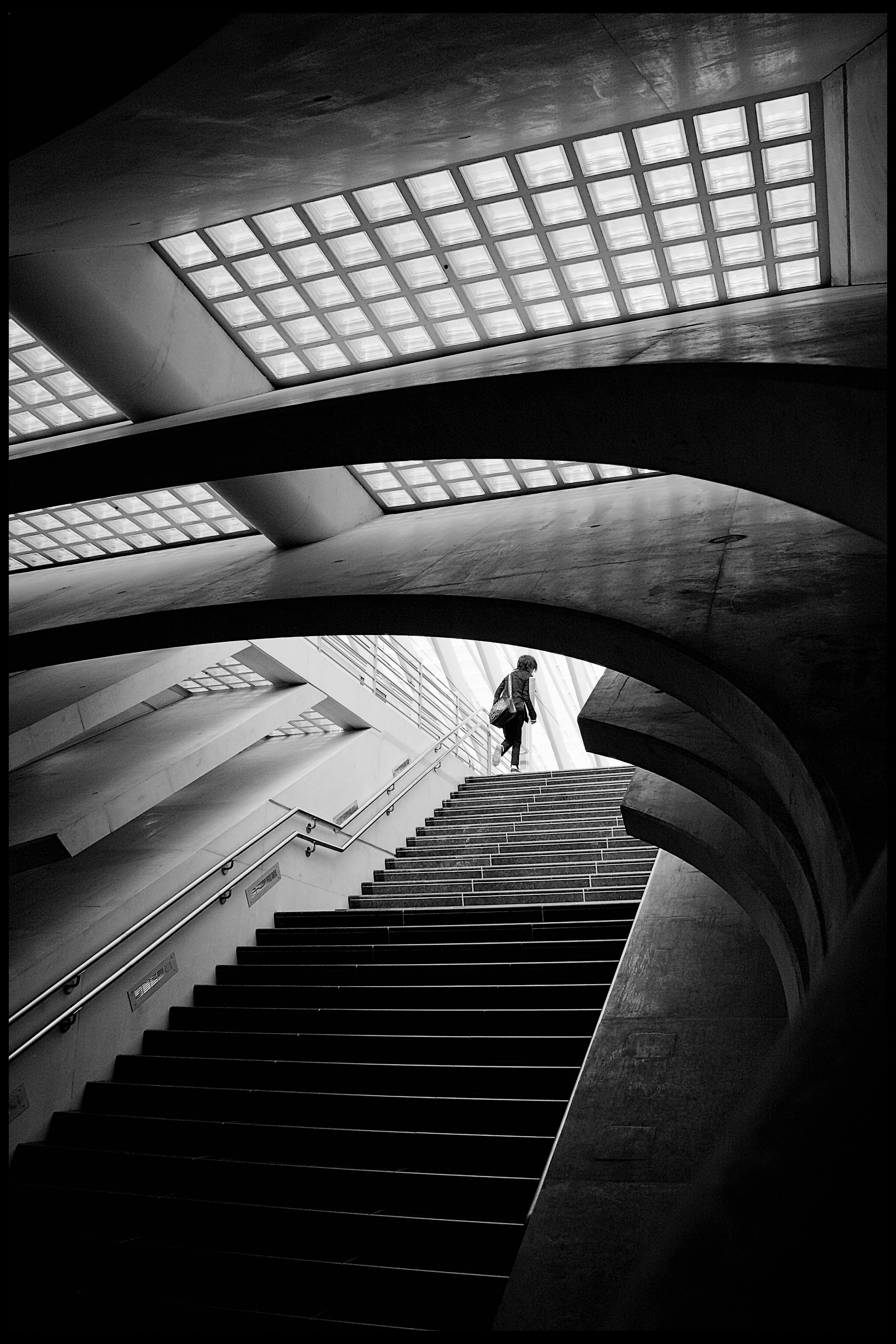 Fotografie Zwart/wit Architectuur Tunnel Station Luik Liege Roltrap Chantal Heusschen Guillemins Calatrava