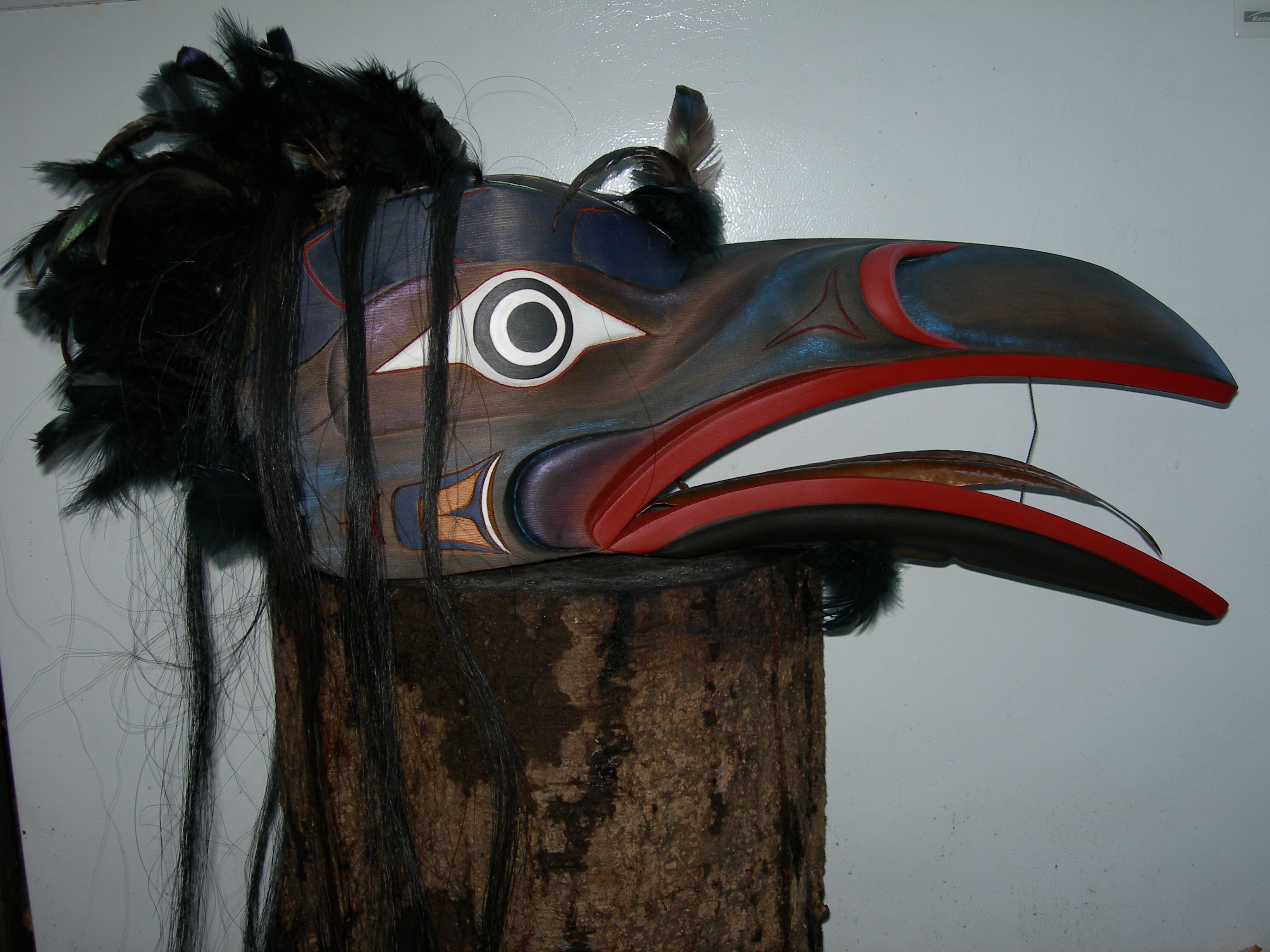 Raven Northwest Coast Black Hamats'a Wood Carving
