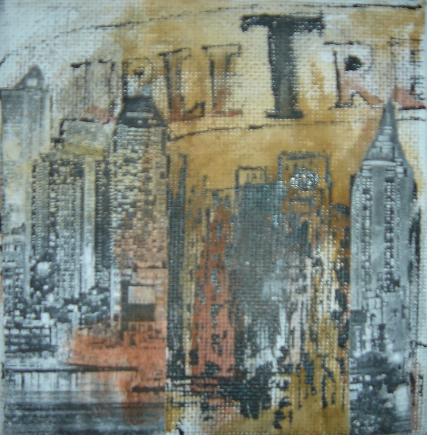New York, "Double Tree". Getekend en geschilderd met rietpen en penseel in drie kleuren inkt op doekje 10x10 cm. Gemengde technieken. Eventueel te combineren met MARQUA008, 010 en 011. Nu van € 65 voor € 45.