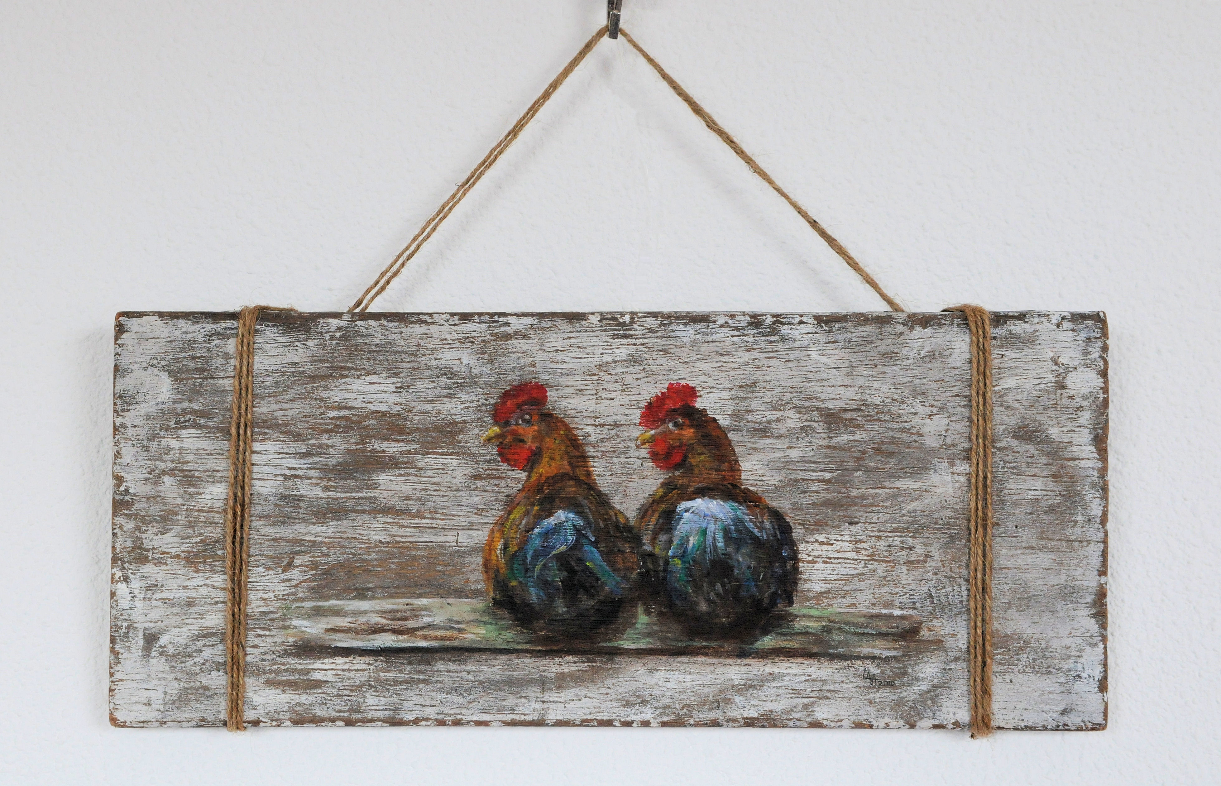 Geschilderd in acryl op houten plankje.