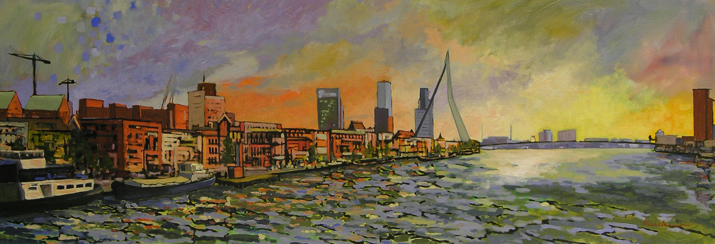 Noordereiland Rotterdam Maas Water Willemsbrug Hefbrug Erasmusbrug Rood Oranje Paars