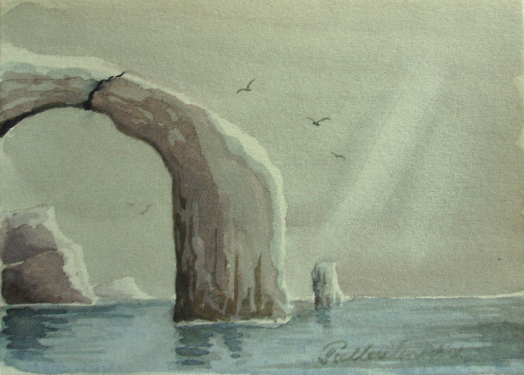 Rotsen Zee Vogels Aquarel Romantiek Realisme