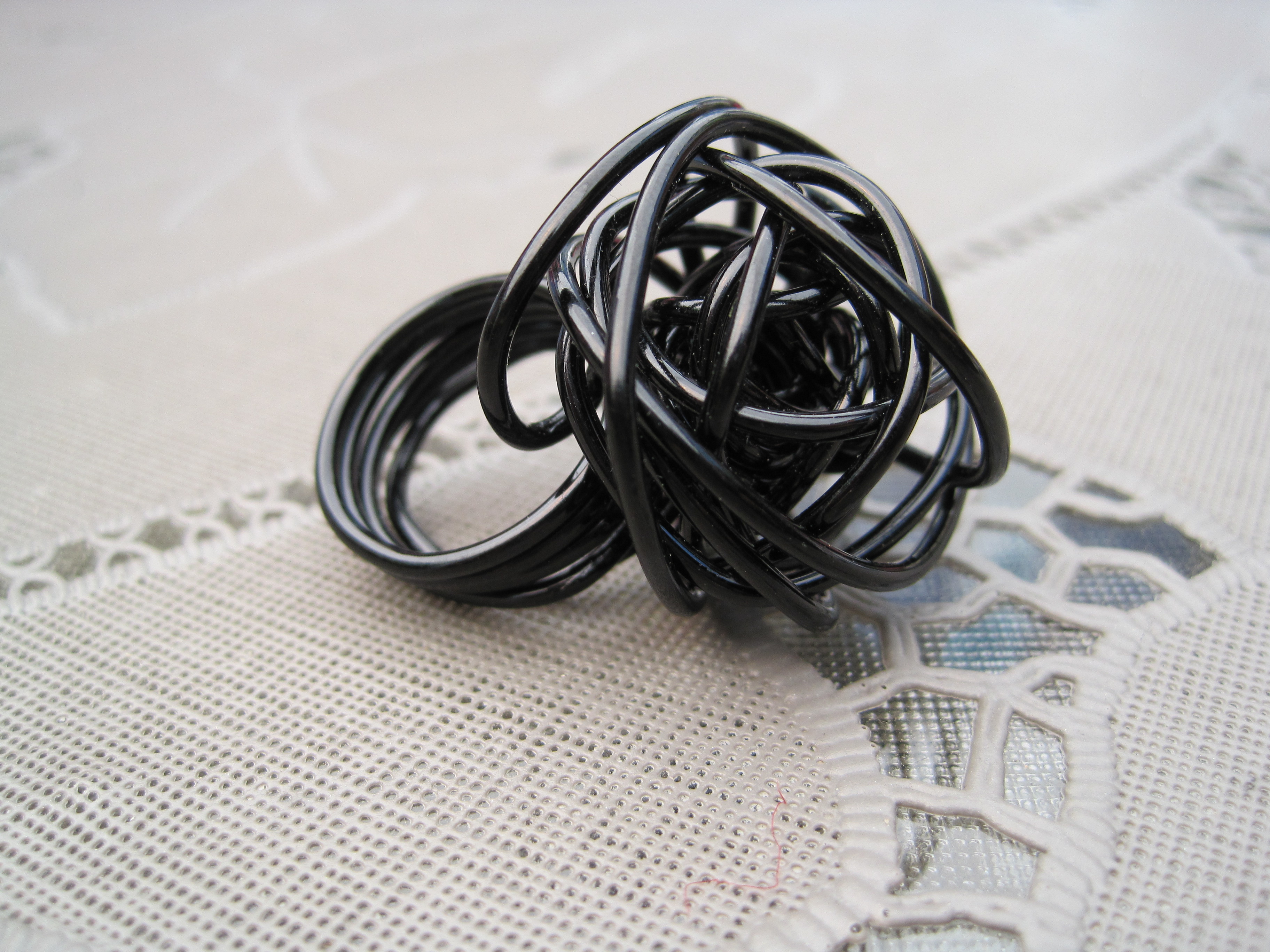 Een ring gemaakt van 2mm dik zwart alluminiumdraad. Verkrijgbaar in verschillende ringmaten, mt. 14, 15, 16, 17, 18, 19mm. Ringen worden op bestelling gemaakt.