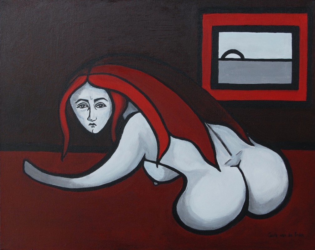 Rood Landschap Vrouw Portret Naakt Liggend Persoon