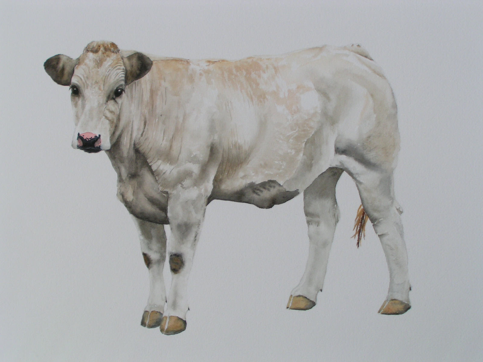 Een aquarel van een prachtige jonge koe. Alle prijzen van aquarellen zijn inclusief de lijst en passepartout.
