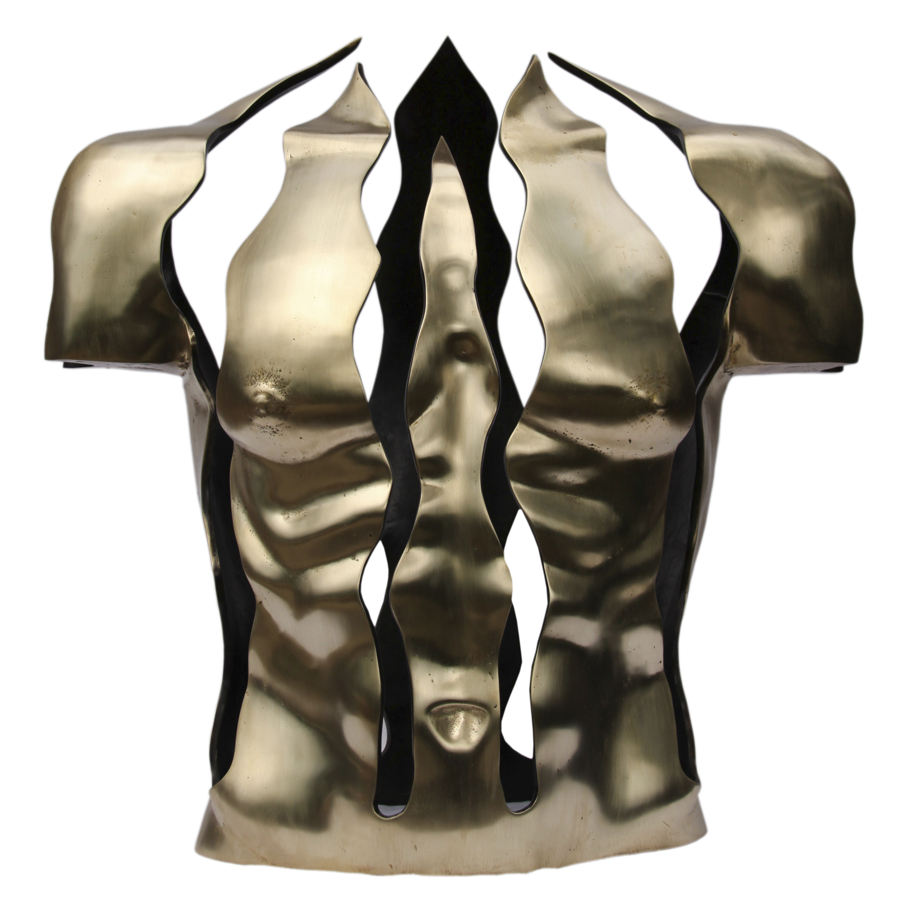 Bronzen mannen tors, uitgebeeld als vlammen. unicum.