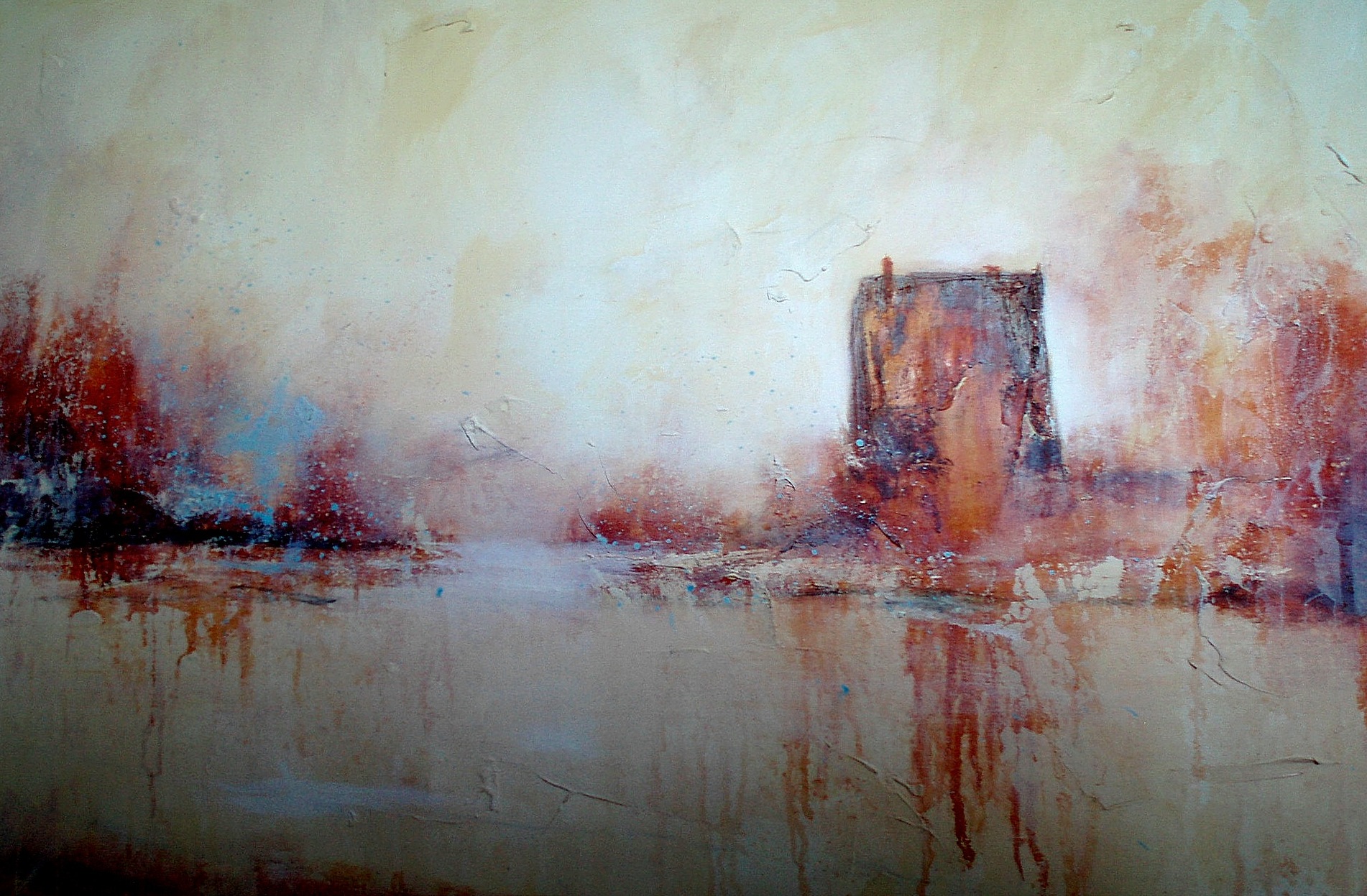 Rood Landschap Acryl Bruin Olieverf Roest Kasteel Rivier Ruïne Middeleeuwen Ridders Ijssel Slot Vesting Nijenbeek Gelre
