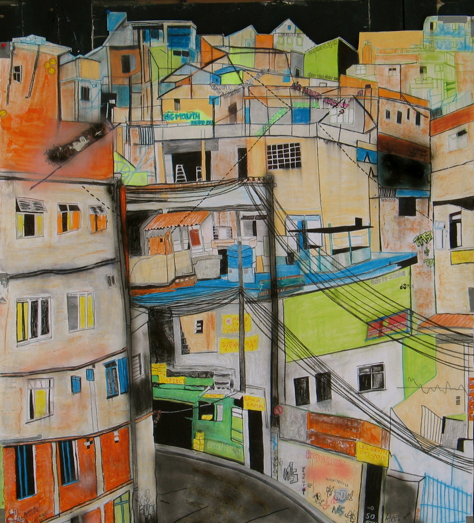 Ik ben Annelies van der Valk (1956). Mijn werk gaat over bebouwing, chaos en verval. De complexe ruimtes zijn meestal niet in een opslag te vatten.