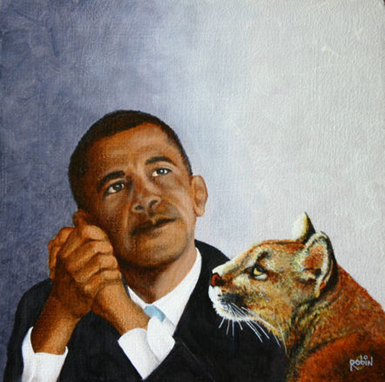 Obama met zijn -Demon- of -Totemdier- of -Beschermengel-. Al naar gelang Uw spirituele waarneming.
