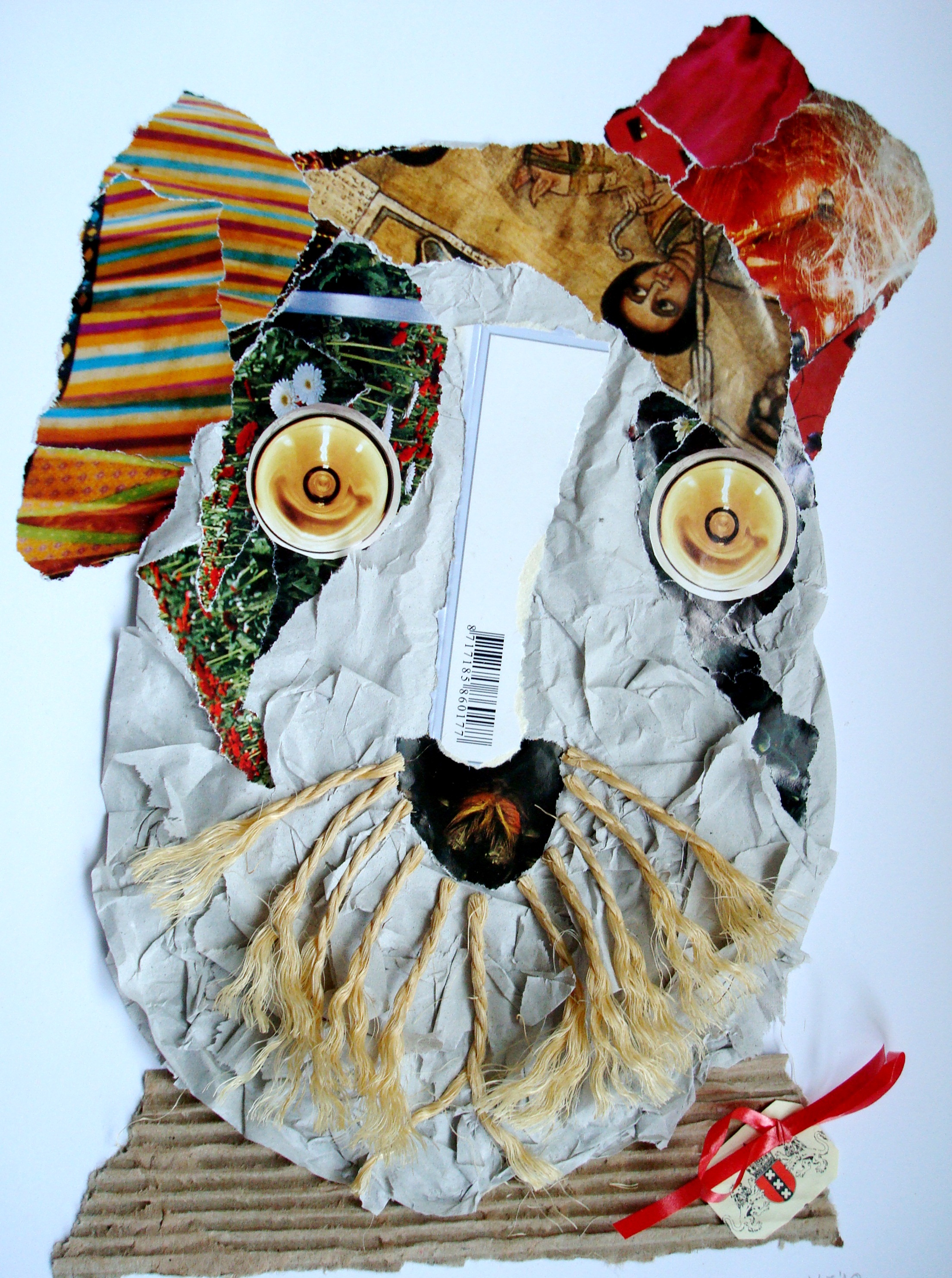 Jack, collage, verschillende papiersoorten, touw, lintje
