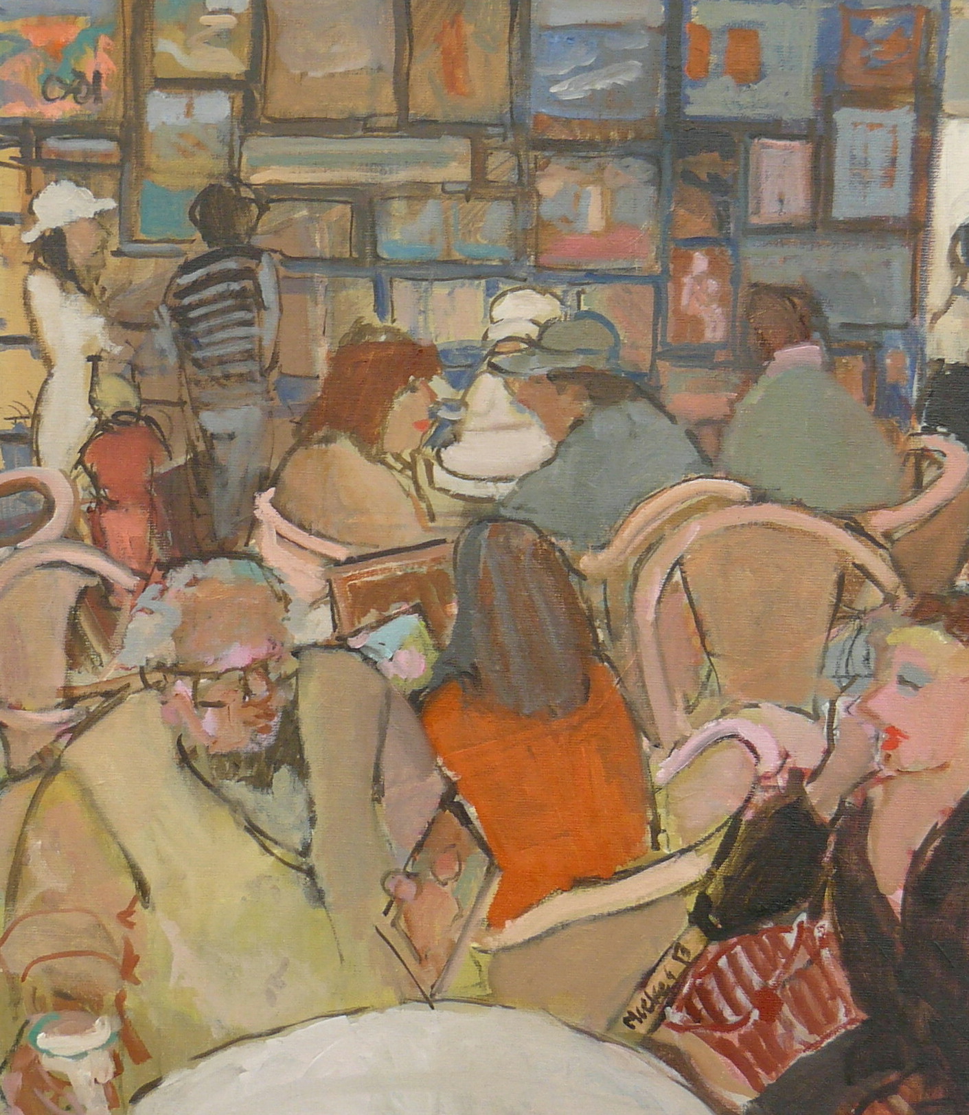 Mensen Schilderijen Stoelen Tafeltjes Praten