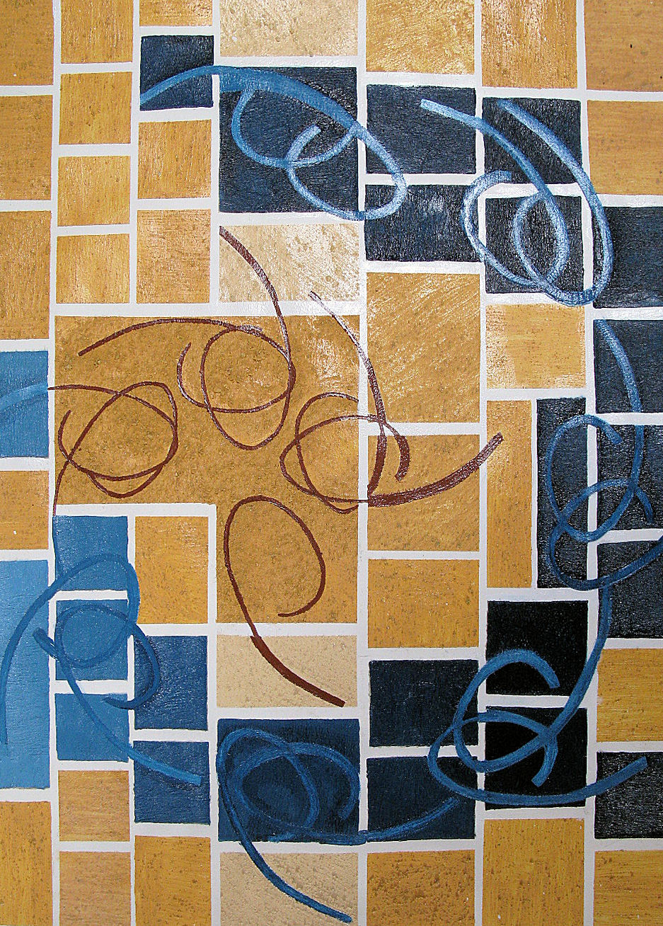 Onderzoek en expressie van vormen binnen het vlak.Van wat vast staat of is naar wat beweegt, wil bewegen,verandering wil brengen.