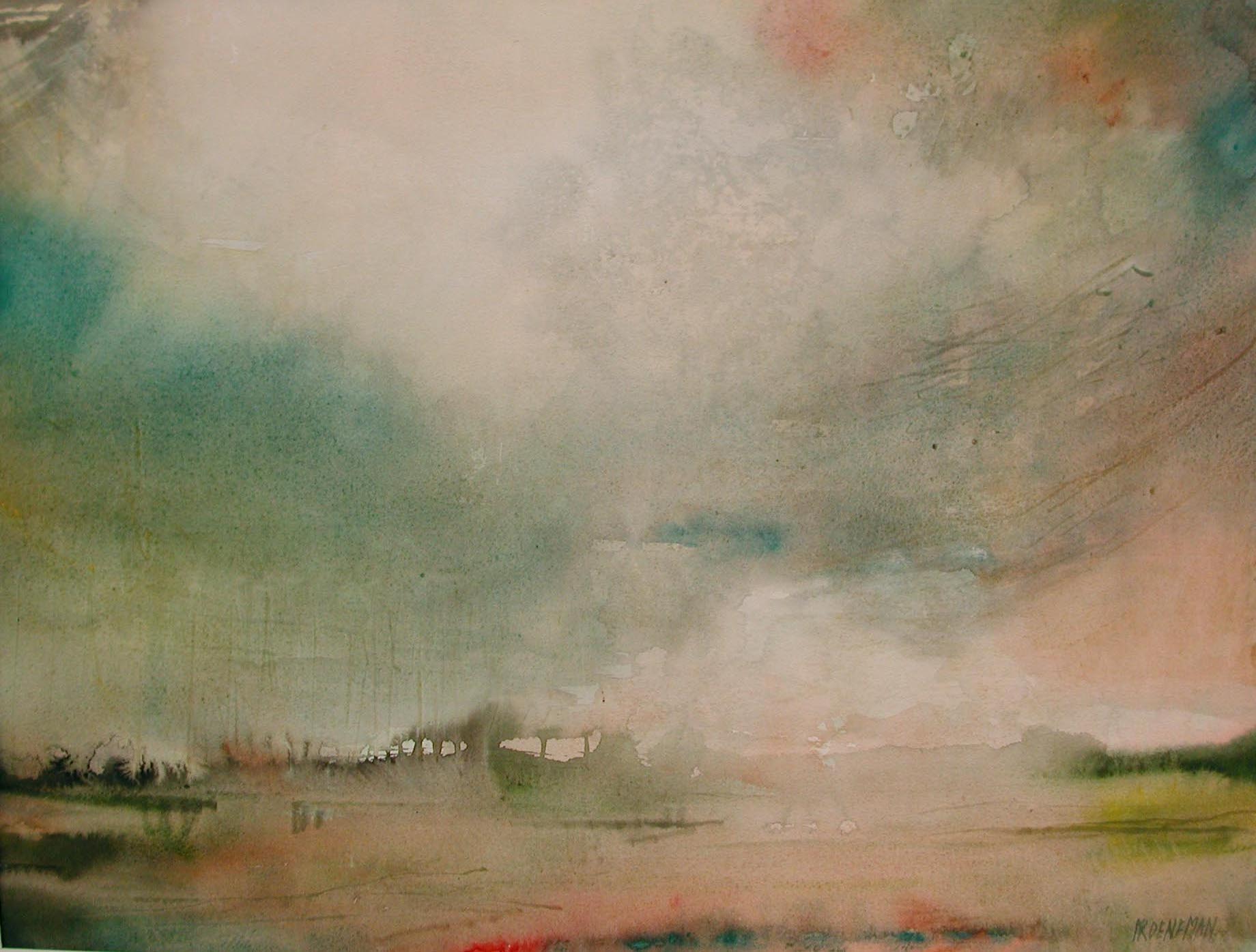 Landschap Aardkleuren Aquarel Wolkenlucht Dramatisch Horizontaal
