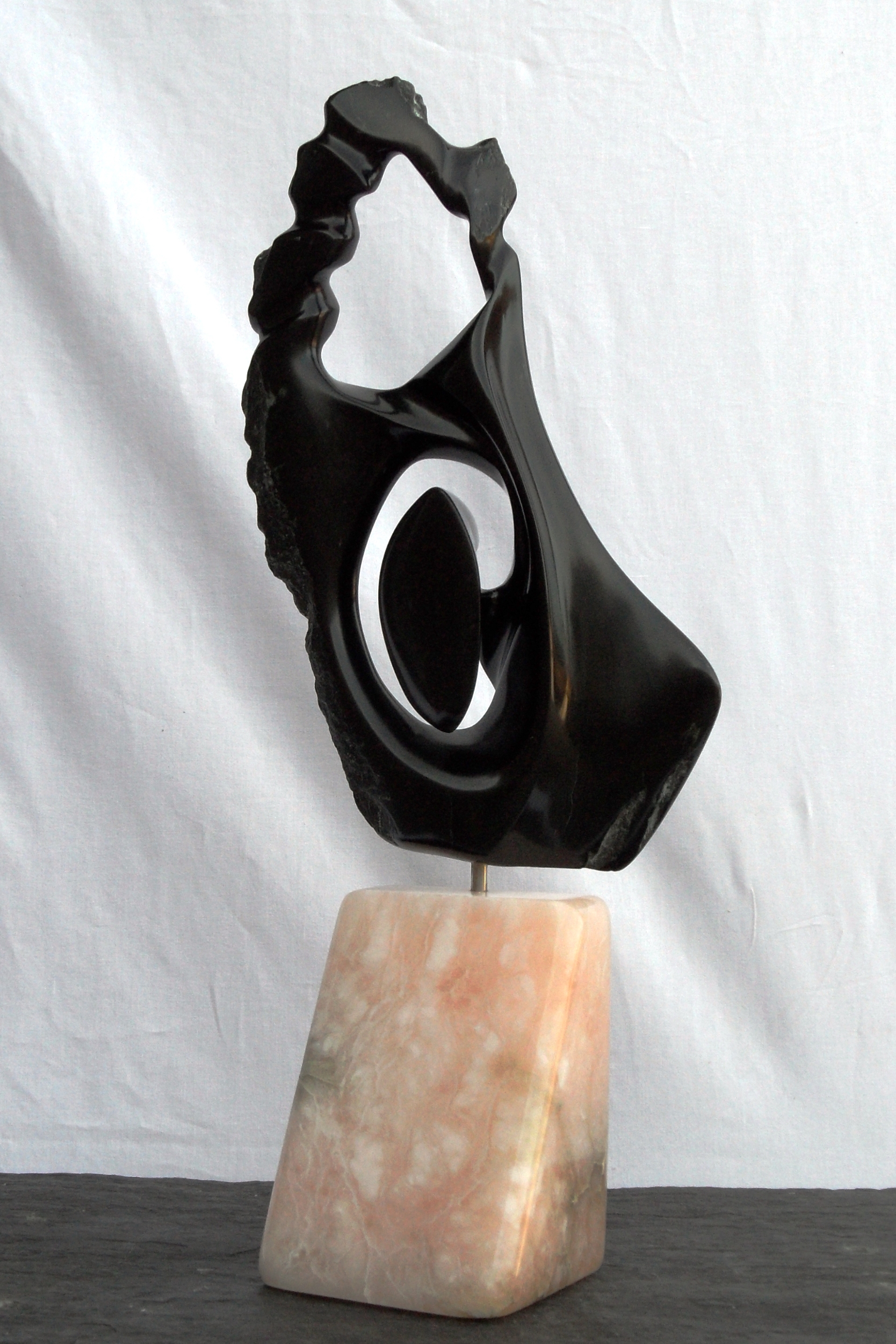 Het is gemaakt van India Serpentijn en gemonteerd op een Orange Rose Albast.