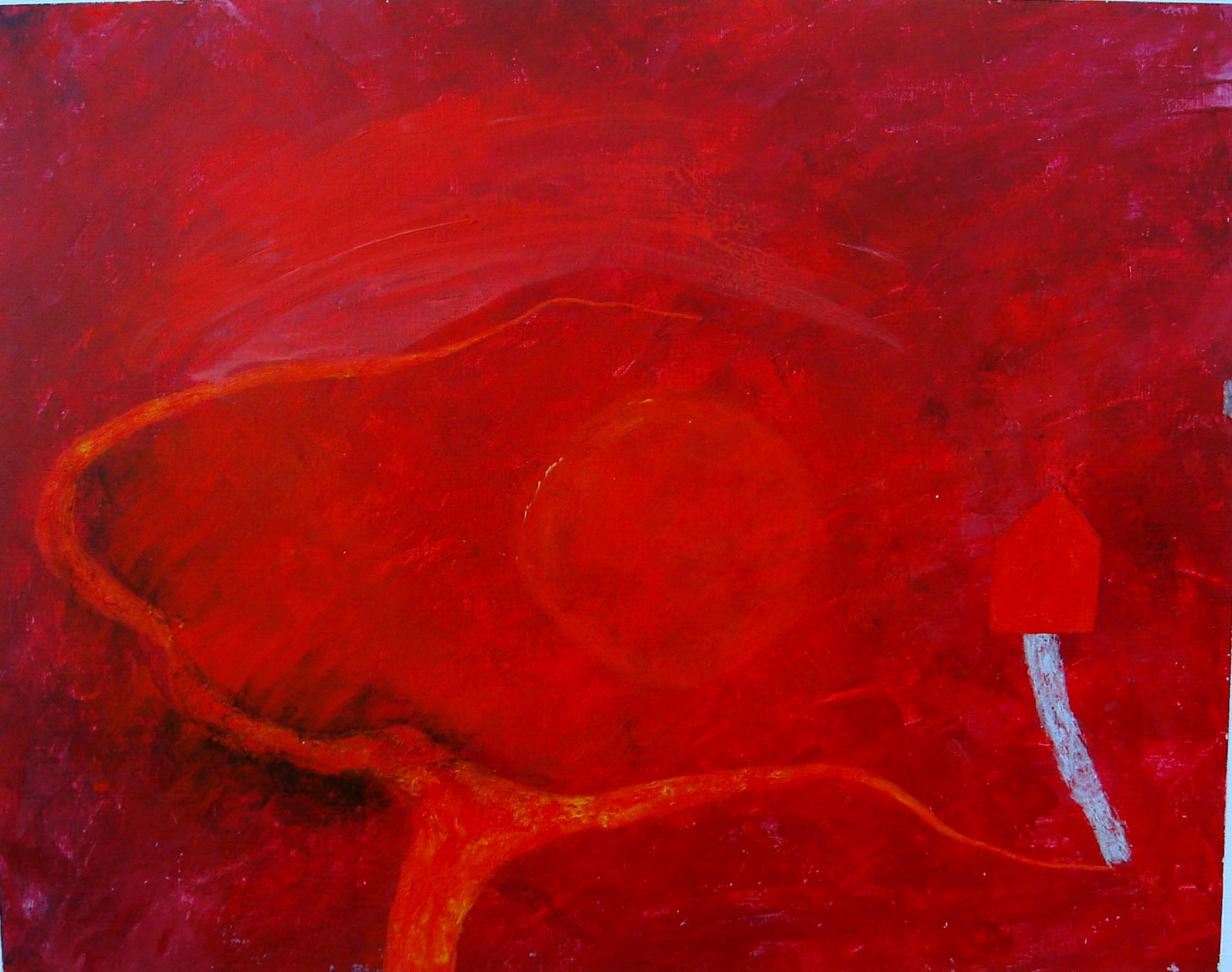Huis Modern Rood Landschap Acryl Boom Abstrakt