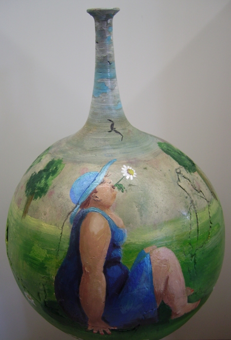Handgevormde vaas, met acryl beschilderd.
