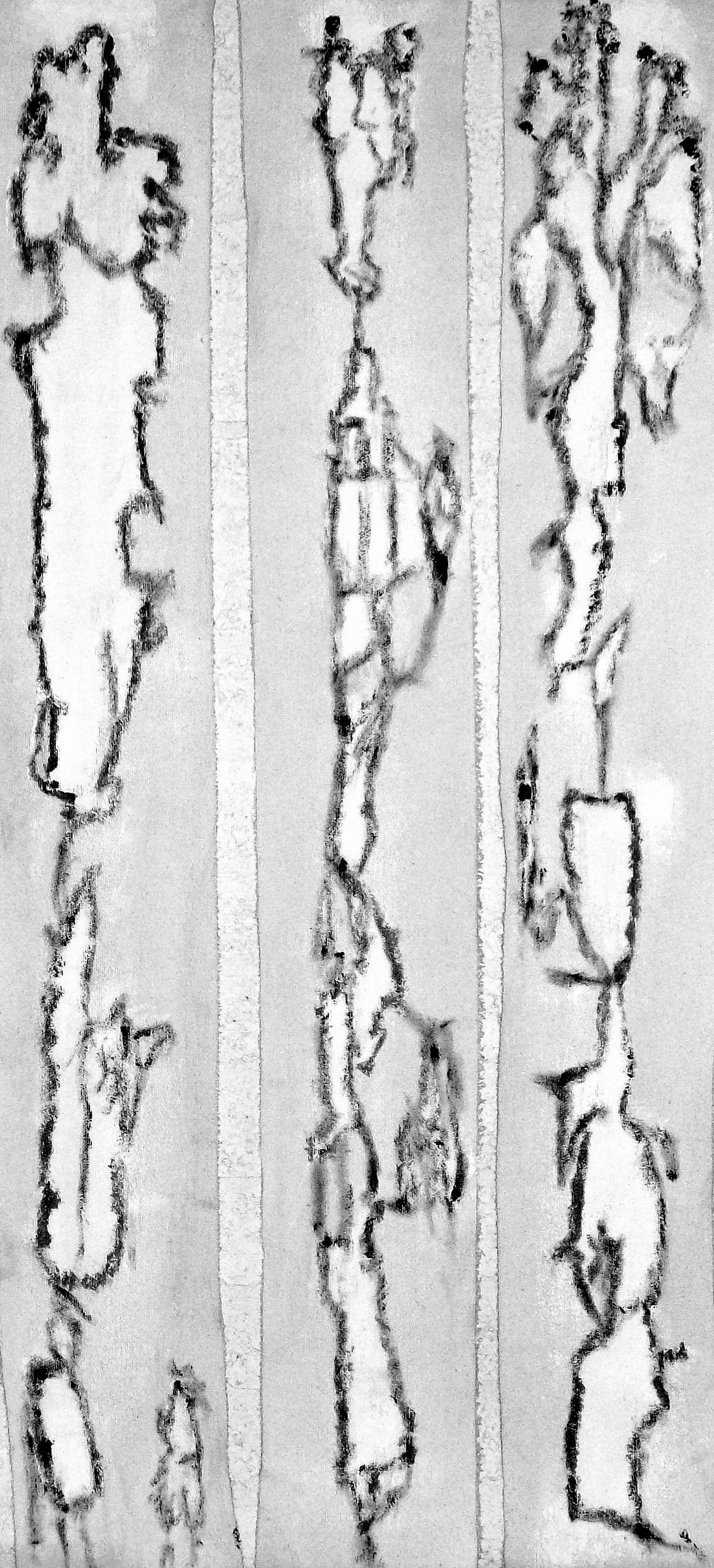 Het materiaal, molton, nodigde uit als drager voor intuitieve schetsen.