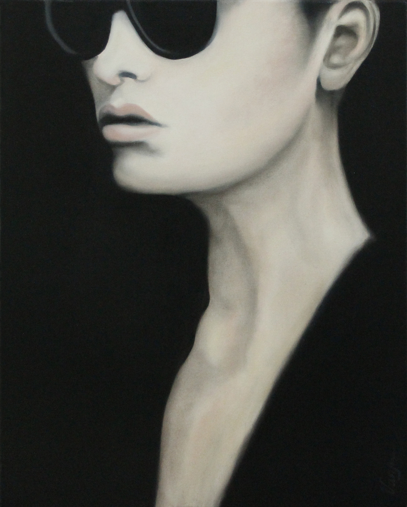 Schilderijen in olieverf. Vrouwelijke schilderijen met een voorkeur van close-up fragmenten, gebracht in een realistische stijl of in een popart stijl.