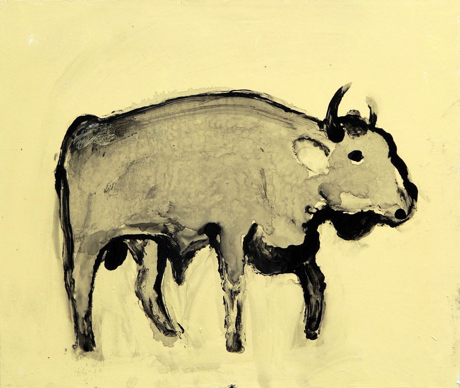 Schilderij Zwart Stier Paneel Black Creme Lak Bull Cream