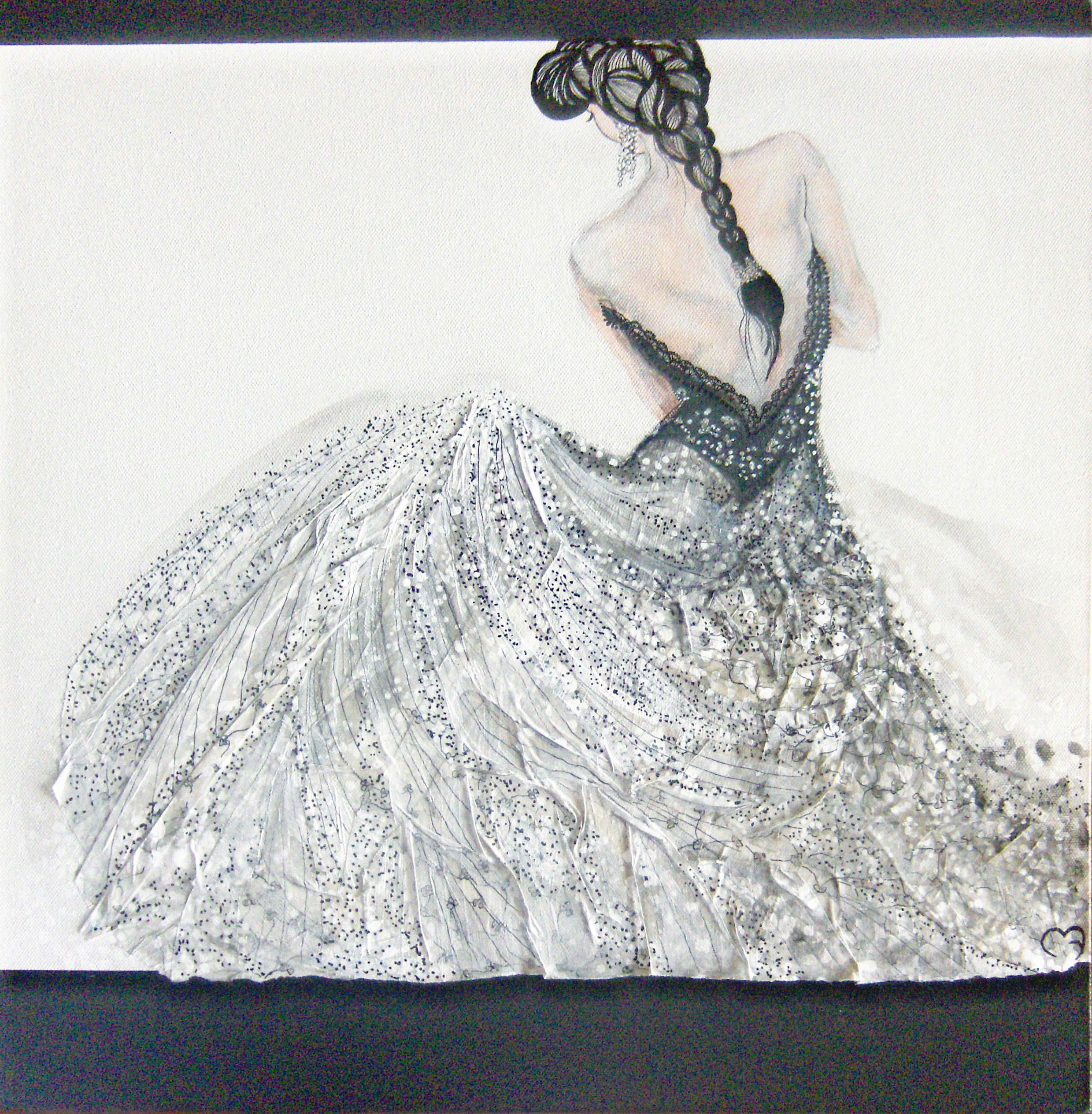 Combinatie van acryl, inkt en ruwe zijde.