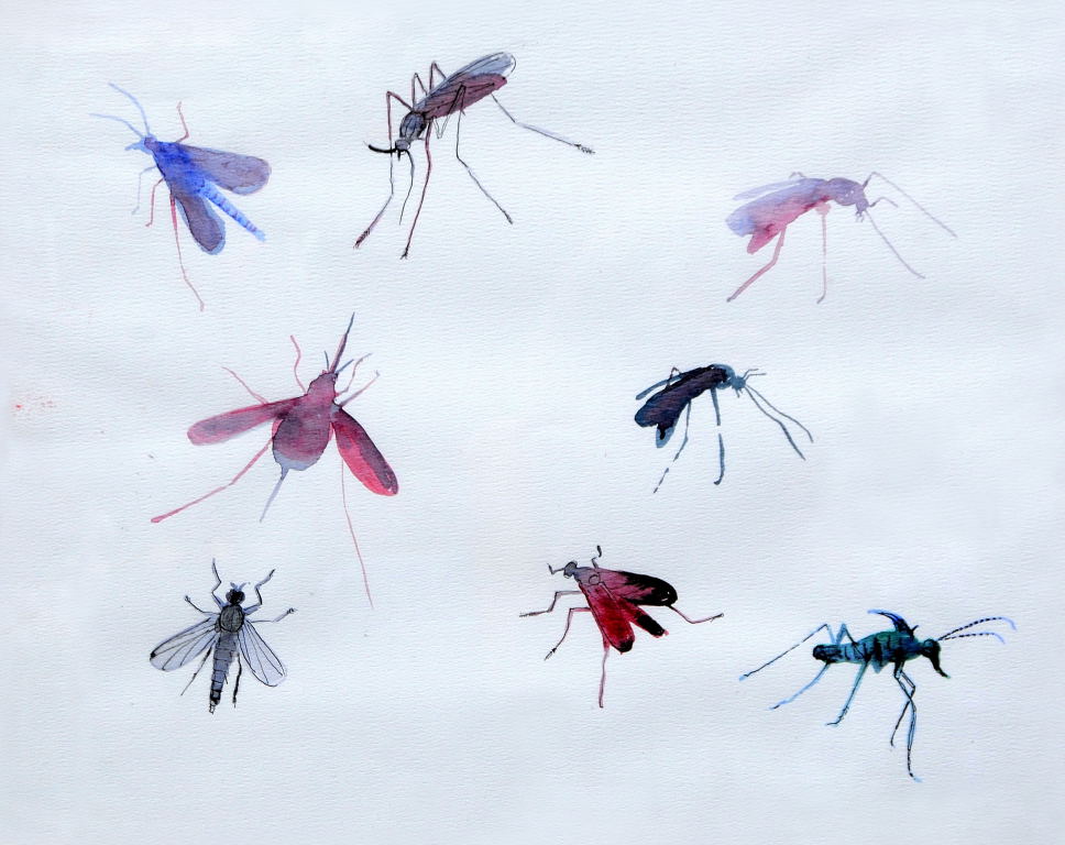 Rood Blauw Papier Aquarel Insect Kleur Pentekening Bugs