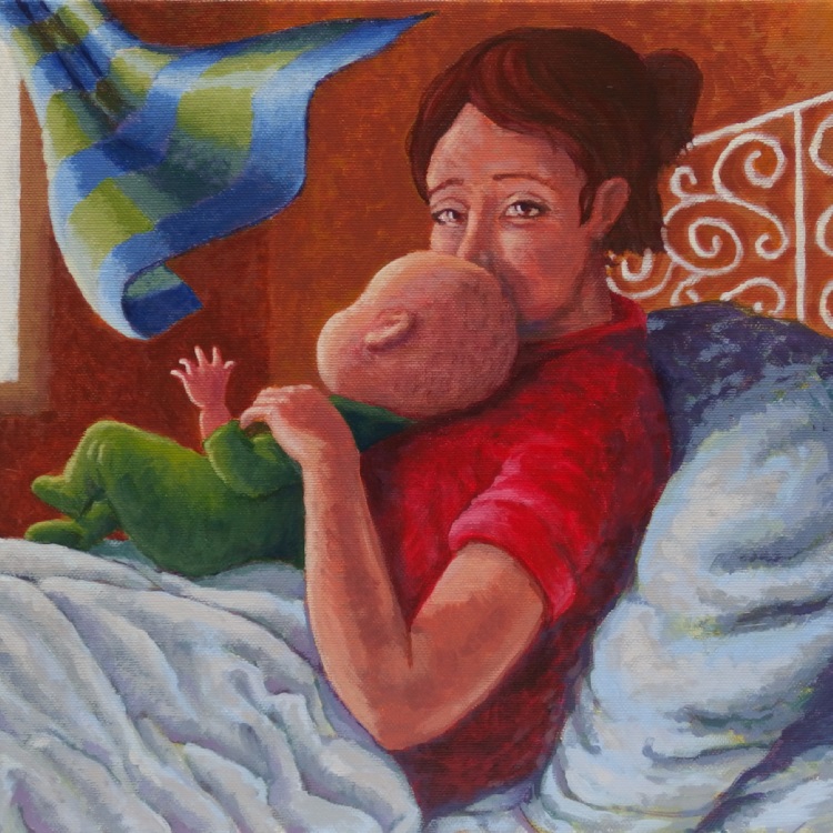 In dit werk uit de "Moederschap"-reeks (2013/2014) zien we een moeder die haar jonge kind kust.