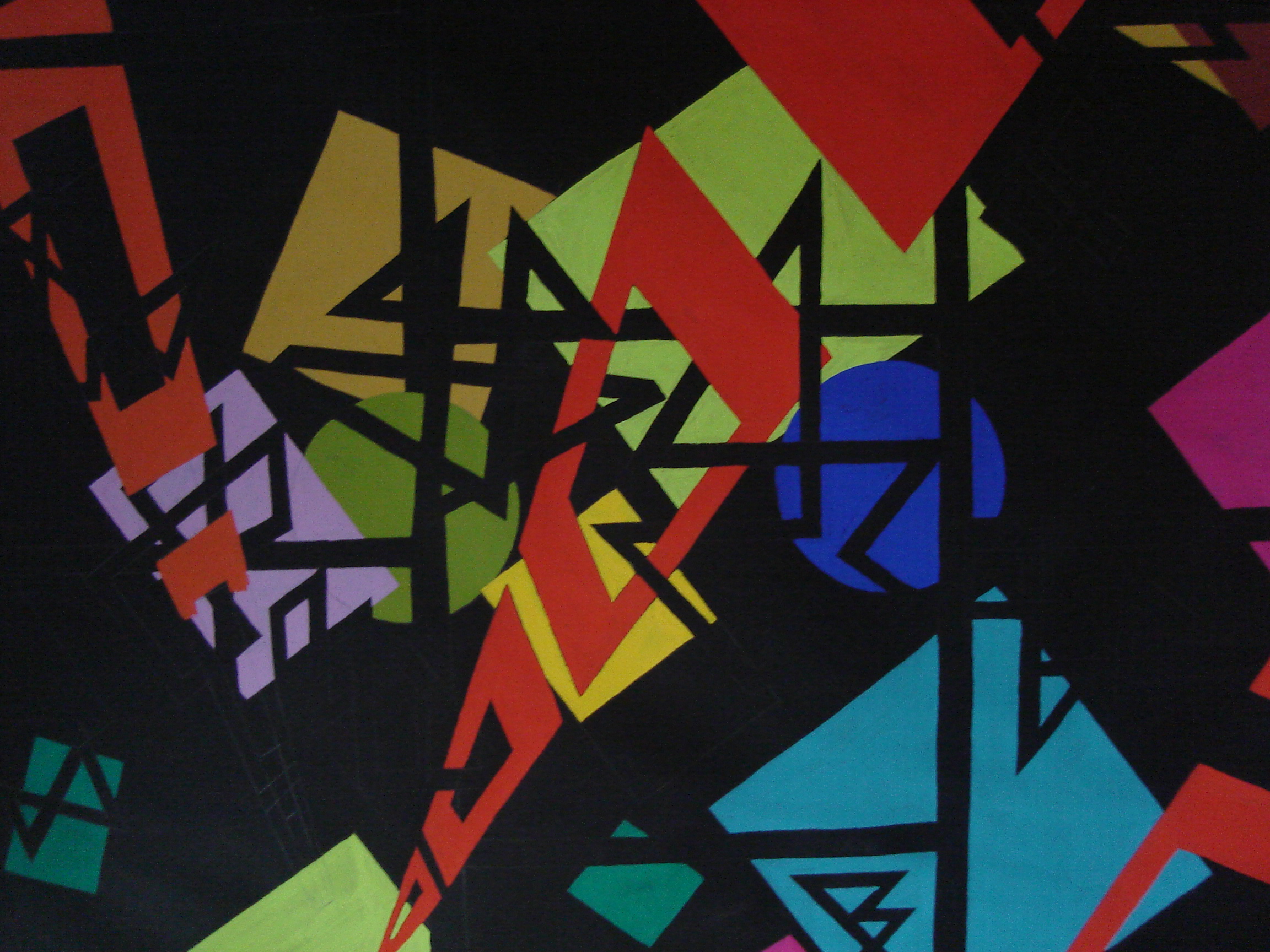 Abstract Figuratief Zwart Kleurrijk Gouache Grafisch Plakkaatverf