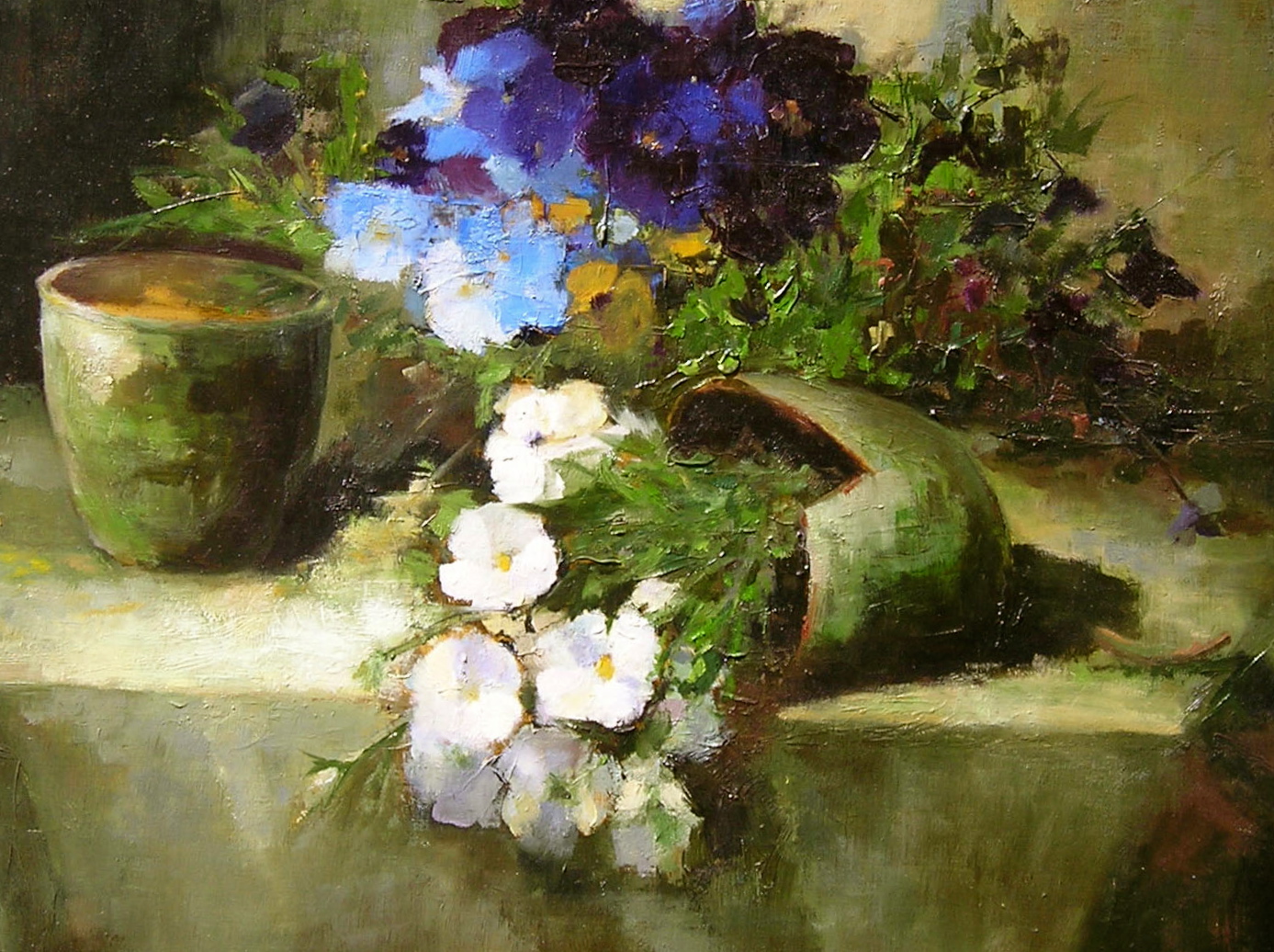 Stilleven met blauwe en witte viooltjes