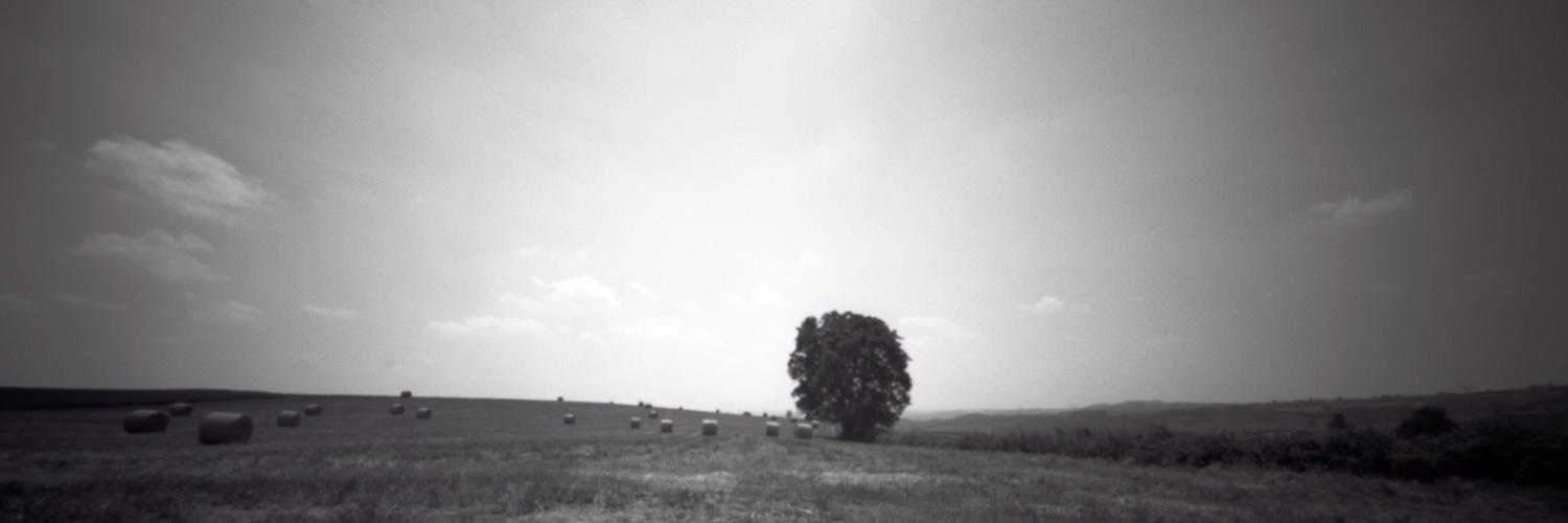 Veld vol met hooibalen en een boom in de Morvan, Frankrijk Oplage: slechts 3 stuks