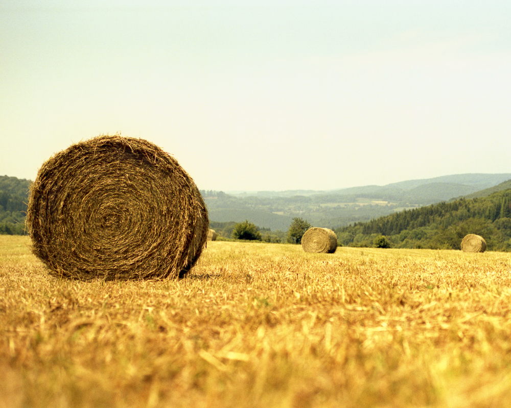 Frankrijk Boom Land Hooi Graan Veld France Morvan Field Akker Hooibalen Agriculture Hay Wheat Tarwe Hooibaal Bale Bales Grane