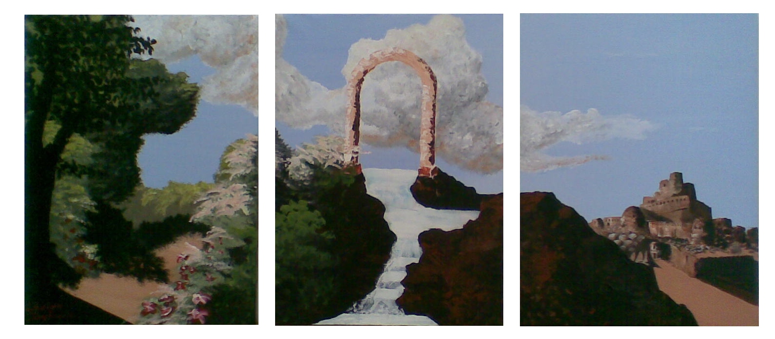 Dit schilderij is een samenloop van mijn eigen leven en de gebeurtenissen in de wereld. Het stelt twee werelden voor, die in het midden voor elkaar toegankelijk zijn door een poort met daardoorheen een bron/rivier. De linker wereld is een (Europees/Noord-Amerikaans) bos, de rechter is een Iraanse woestijn (met de citadel van Bam, zoals deze eruit zag voor de aardbeving aldaar). Het midden is mijn interpretatie van de Bron die we in ons allemaal dragen en waarin in mijn visie de weg ligt naar ieder ander mens: in een open hart. "Ik eer de plaats in jou waar het hele universum is. Ik eer de plaats in jou die liefde is, waarheid, licht en vrede. Als jij daar bent, in jou, waar liefde is, waarheid, licht en vrede en ik ben daar, in mij, waar liefde is, waarheid, licht en vrede, dan zijn we Een."