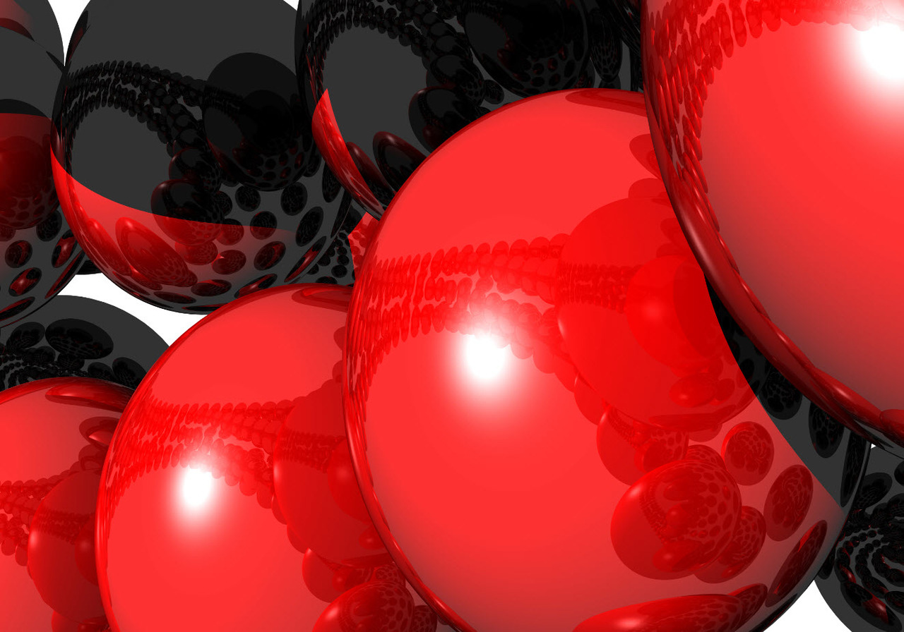 Reflecties in een rode ballen,. te printen 100 x 100 cm