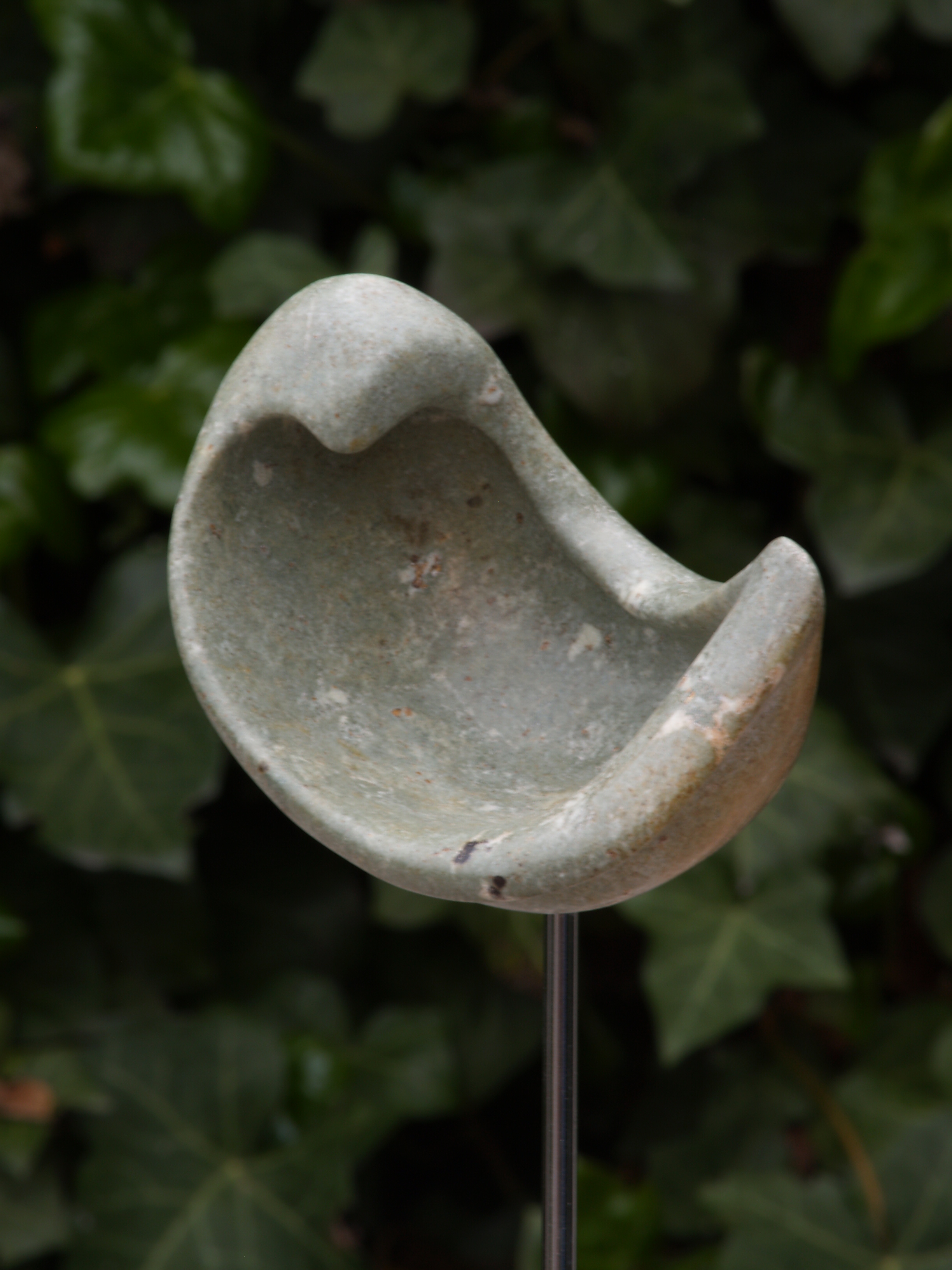 Groene speksteen ui Brazilië op een staaf. totale hoogte met sokkel (Beligisch hardsteen) is 30 cm.