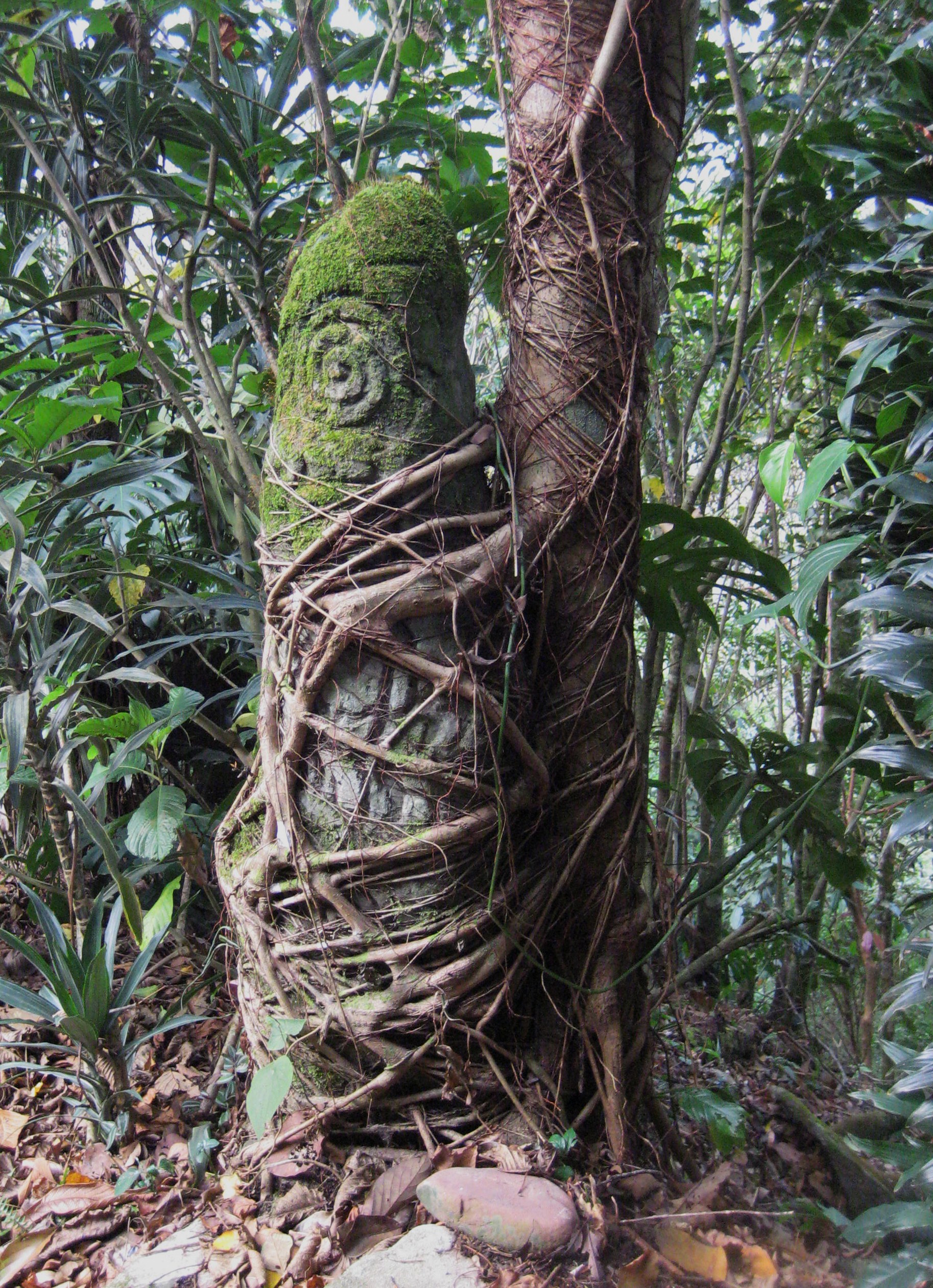 artificiele monoliet, omarmd door een ficus