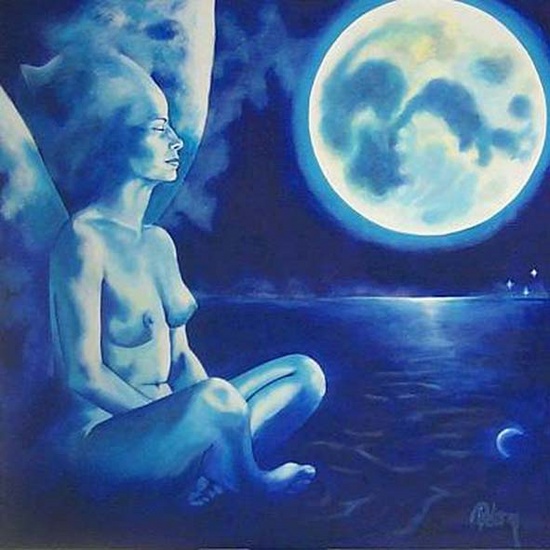Naakt Blauw Engel Maan Moon Blue Angel See Zee
