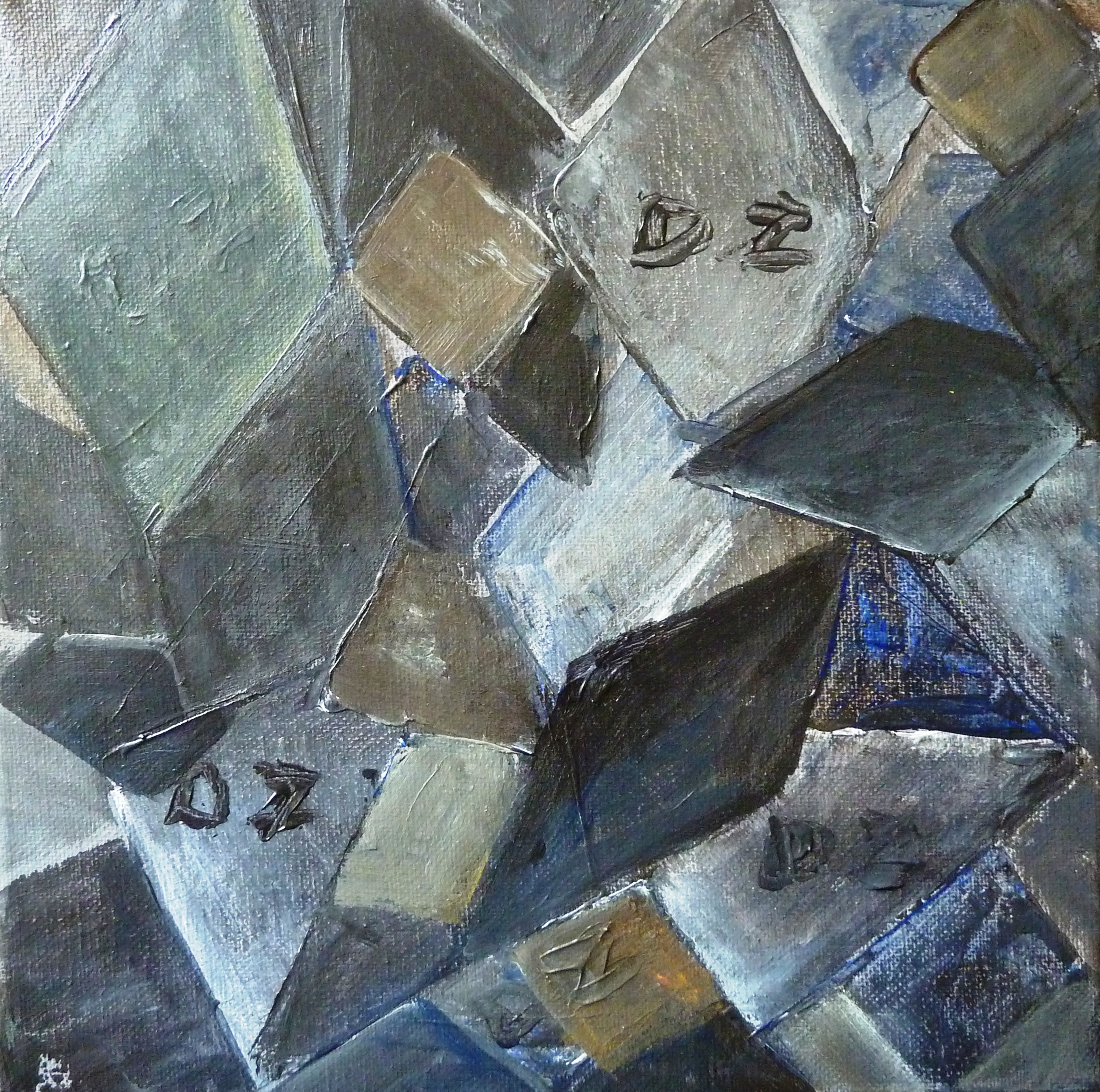 Vier schilderijtjes van de smaken zoet, zuur bitter en zout. Dit is de vierde. Zoute drop. Deze 4 werken zijn onderdeel van het thema "De smaak van kleur".