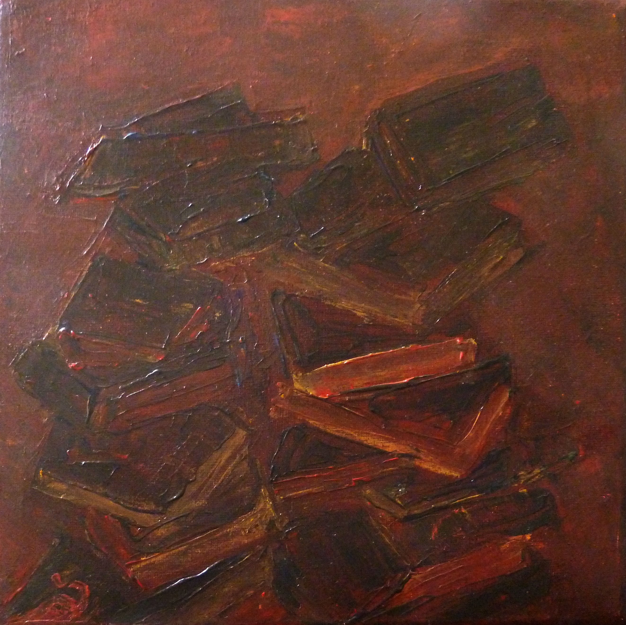 Vier schilderijtjes van de smaken zoet, zuur bitter en zout. Dit is de derde. Bittere chocolade. Deze 4 werken zijn onderdeel van het thema "De smaak van kleur".