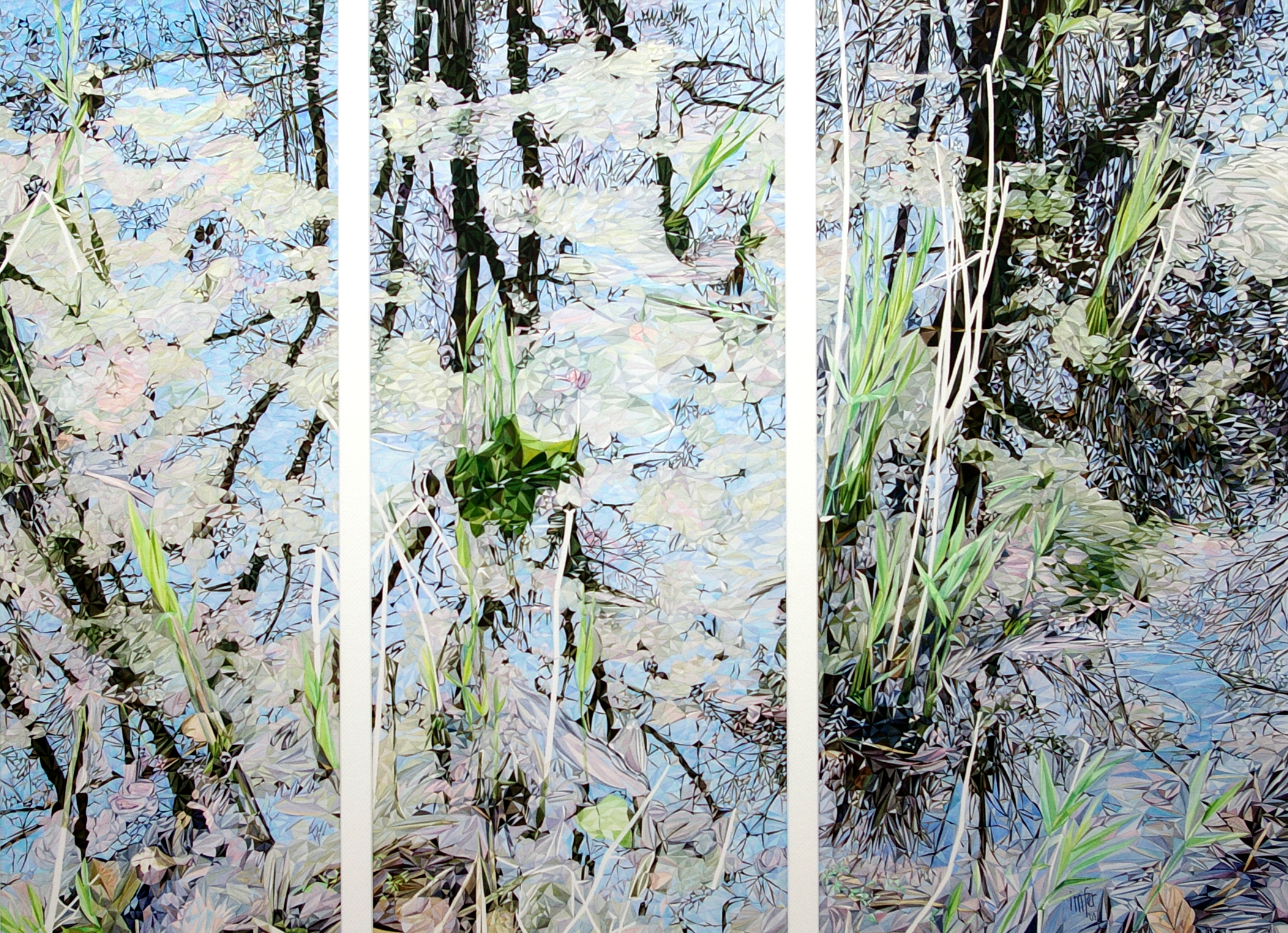 De weerspiegeling van objecten in de natuur doen mij met magische vormen spelen. De kijker heeft soms moeite om beiden, het echte en de spiegel, van elkaar te onderscheiden. Ik ervaar het als een uitdaging om met mijn kunstvorm een te zijn met de natuur, de uitstraling van rust te ervaren en het goed gevoel dat ik zelf ervaar door te geven aan diegenen die zich geboeid voelen.